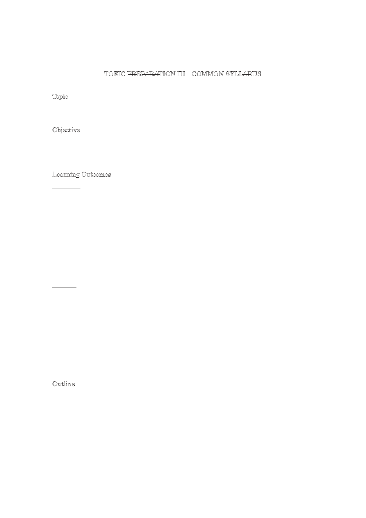 TOEIC PREPARATION III COMMON SYLLABUS Topic