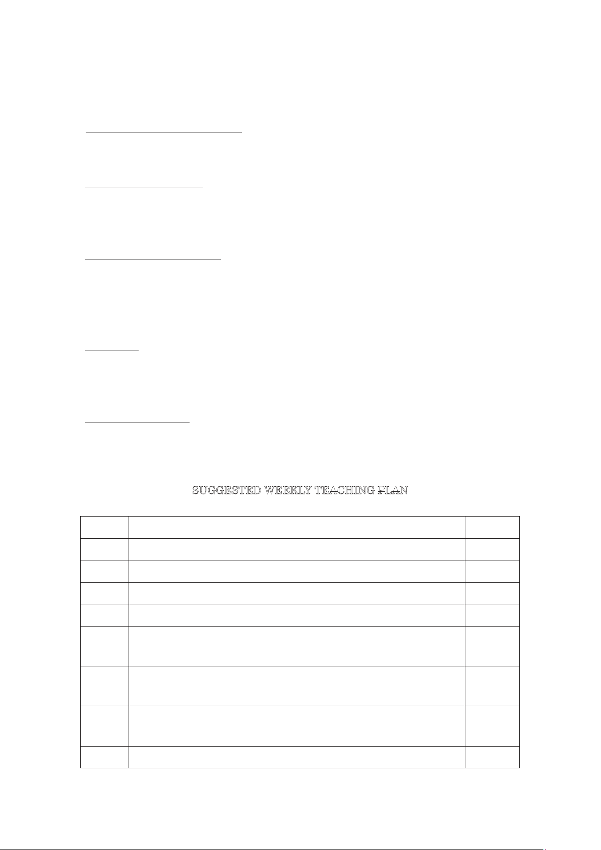 SUGGESTED WEEKLY TEACHING PLAN Week Content Chapter 1 Paragraph structure 1&2 2