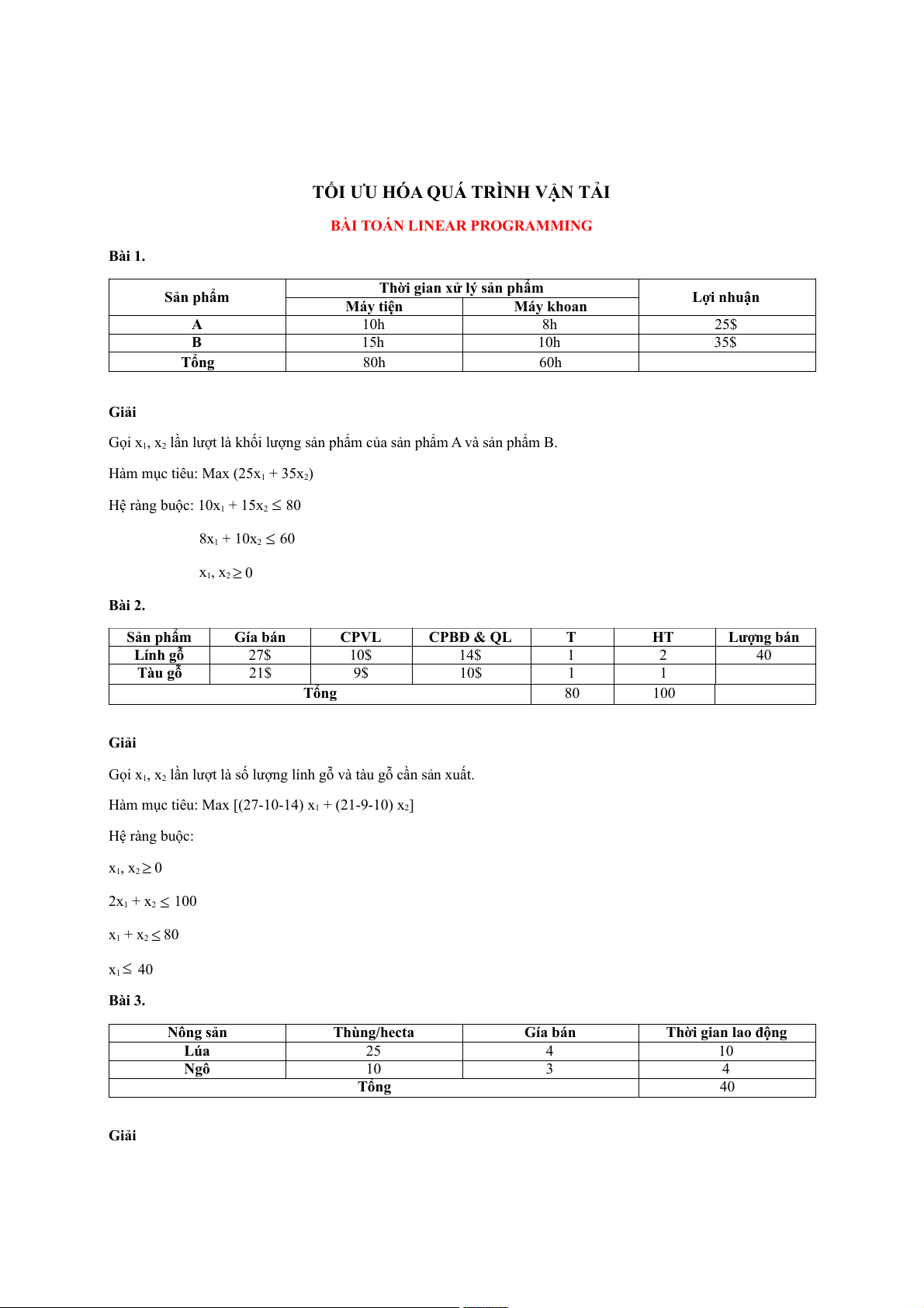 BÀI TOÁN LINEAR PROGRAMMING Bài 1.