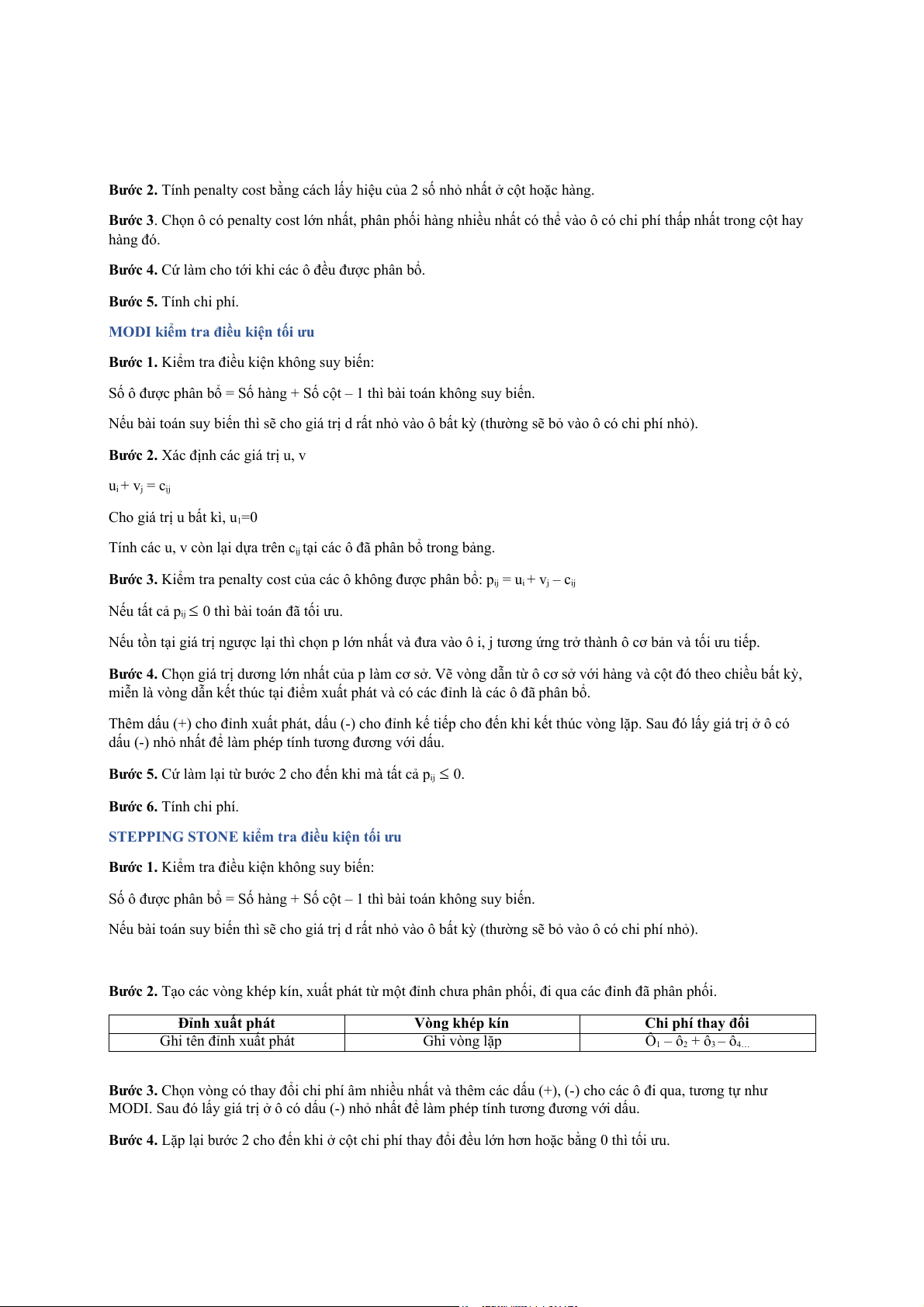 STEPPING STONE kiểm tra điều kiện tối ưu