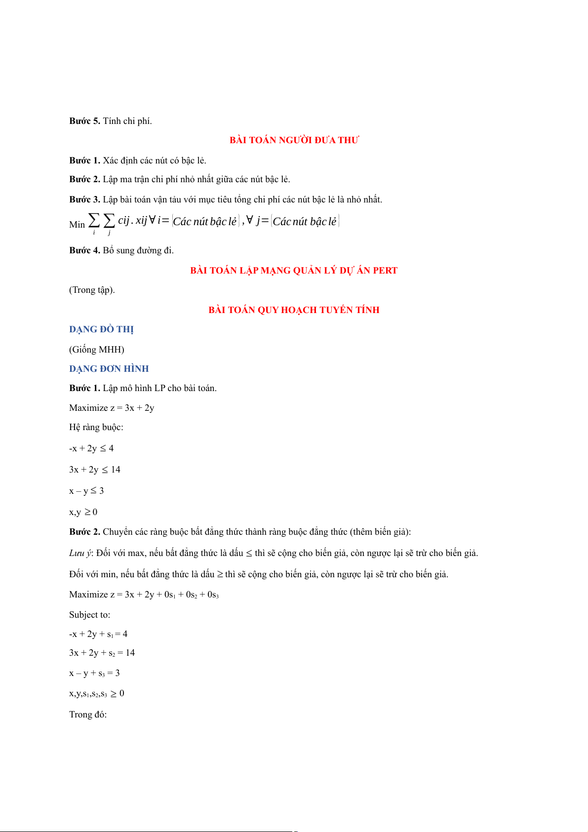 BÀI TOÁN QUY HOẠCH TUYẾN TÍNH DẠNG ĐỒ THỊ (Giống MHH) DẠNG ĐƠN HÌNH
