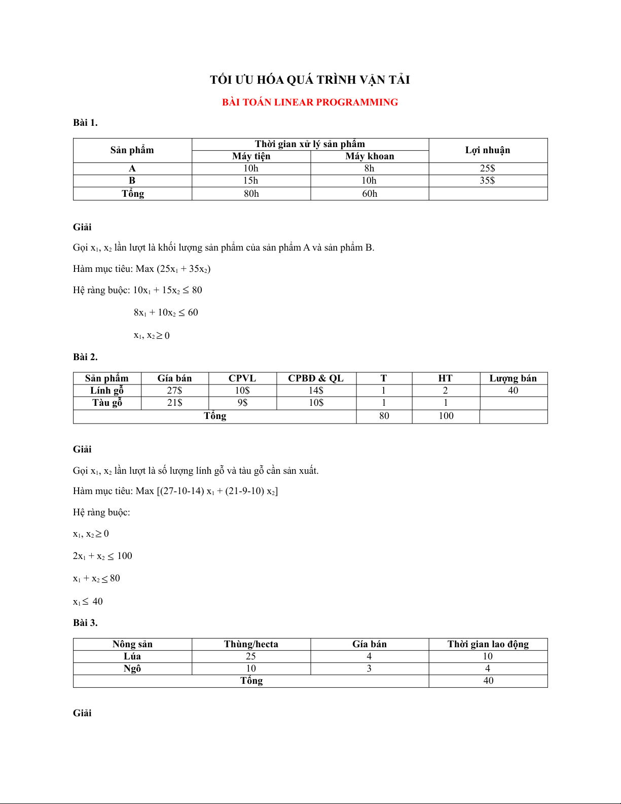 BÀI TOÁN LINEAR PROGRAMMING Bài 1.