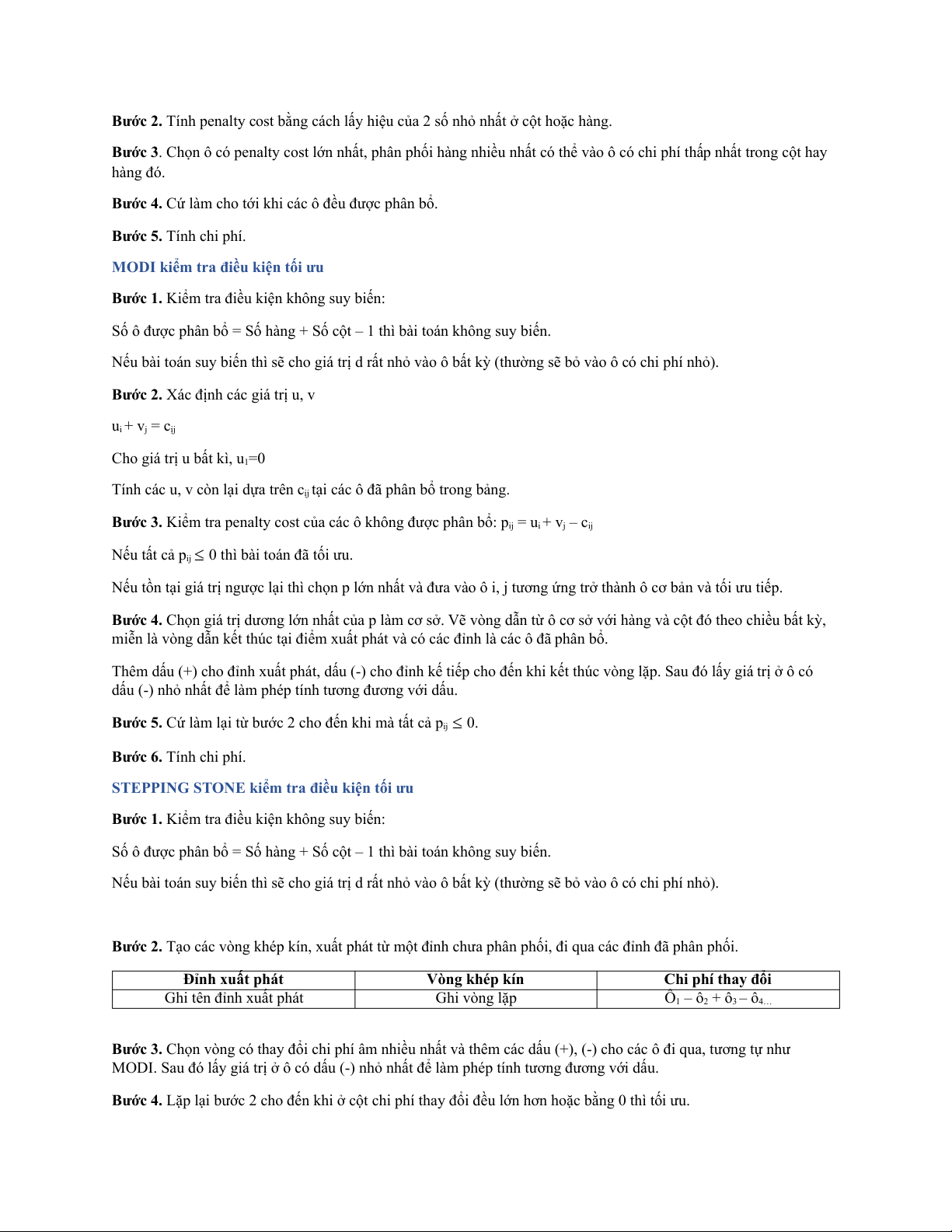 Bước 4. Lặp lại bước 2 cho đến khi ở cột chi phí thay đổi đều lớn hơn hoặc bằng 0 thì tối ưu.