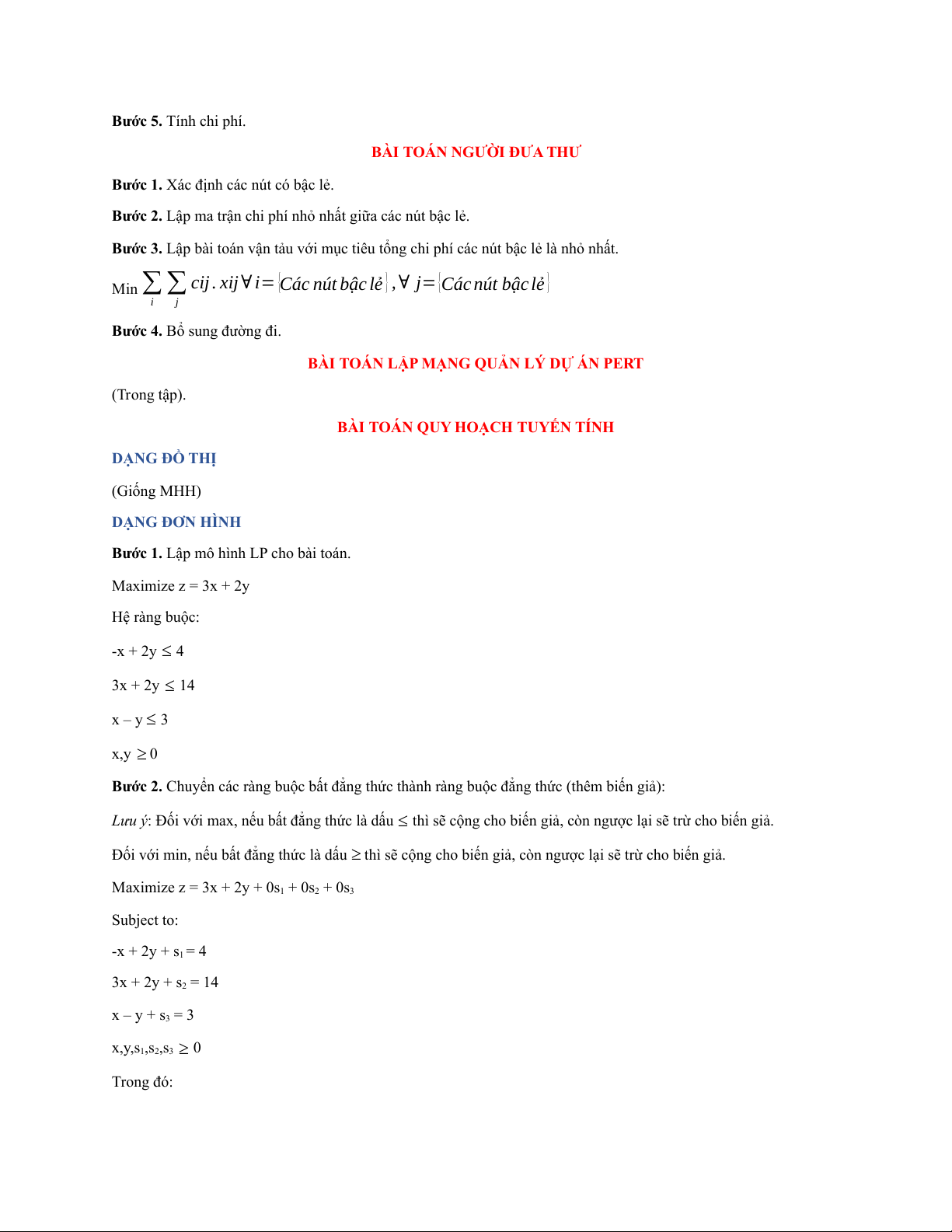 BÀI TOÁN QUY HOẠCH TUYẾN TÍNH DẠNG ĐỒ THỊ (Giống MHH) DẠNG ĐƠN HÌNH