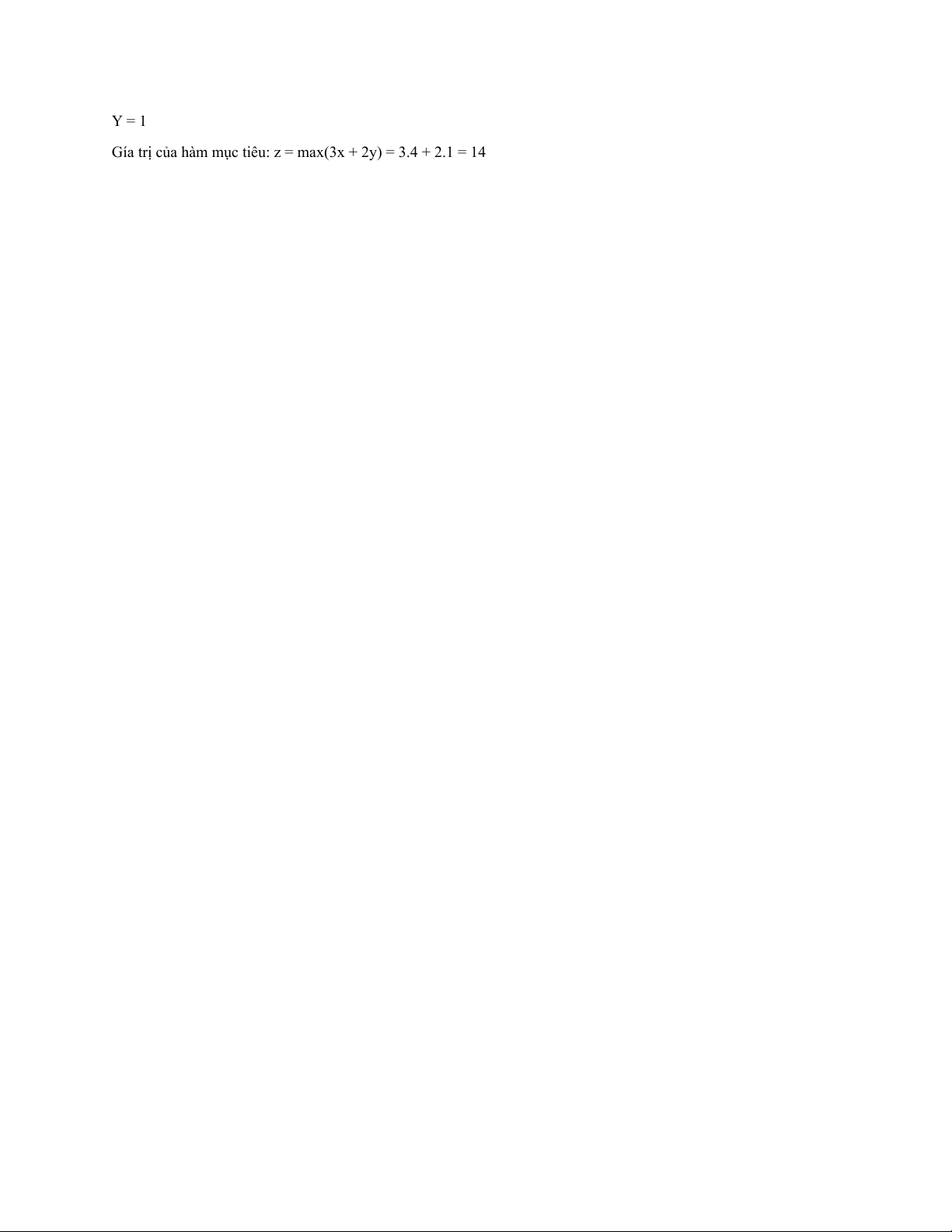 Gía trị của hàm mục tiêu: z = max(3x + 2y) = 3.4 + 2.1 = 14