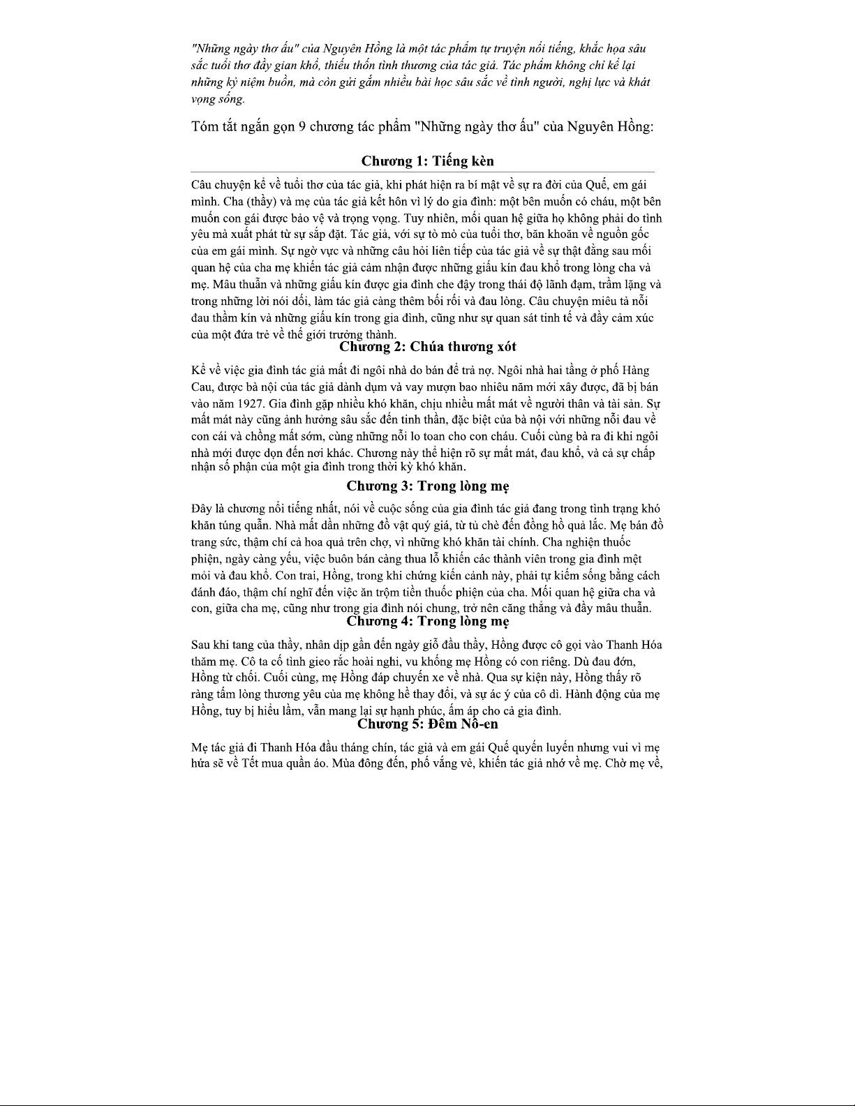 Tóm tắt 9 chương của "Những ngày thơ ấu" - Nguyên Hồng