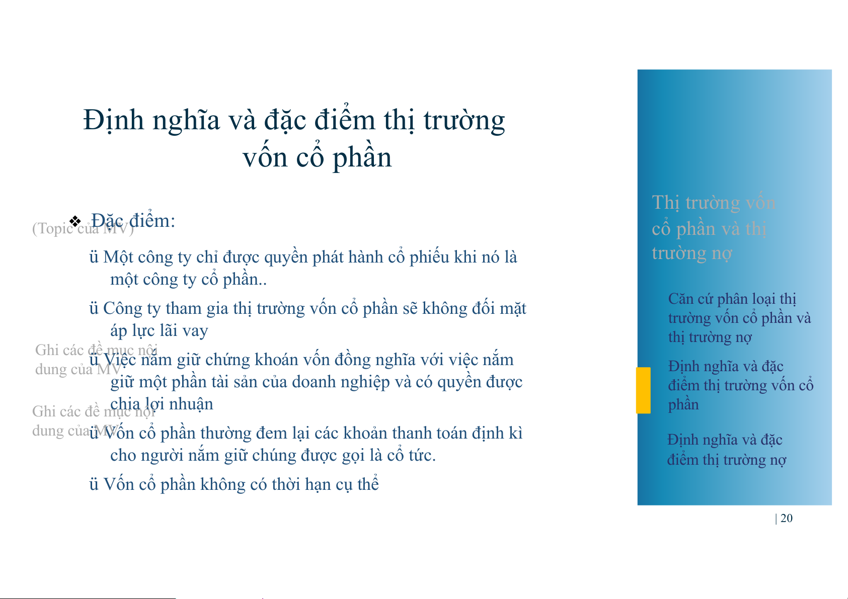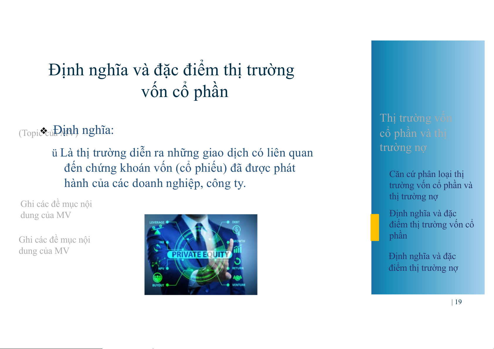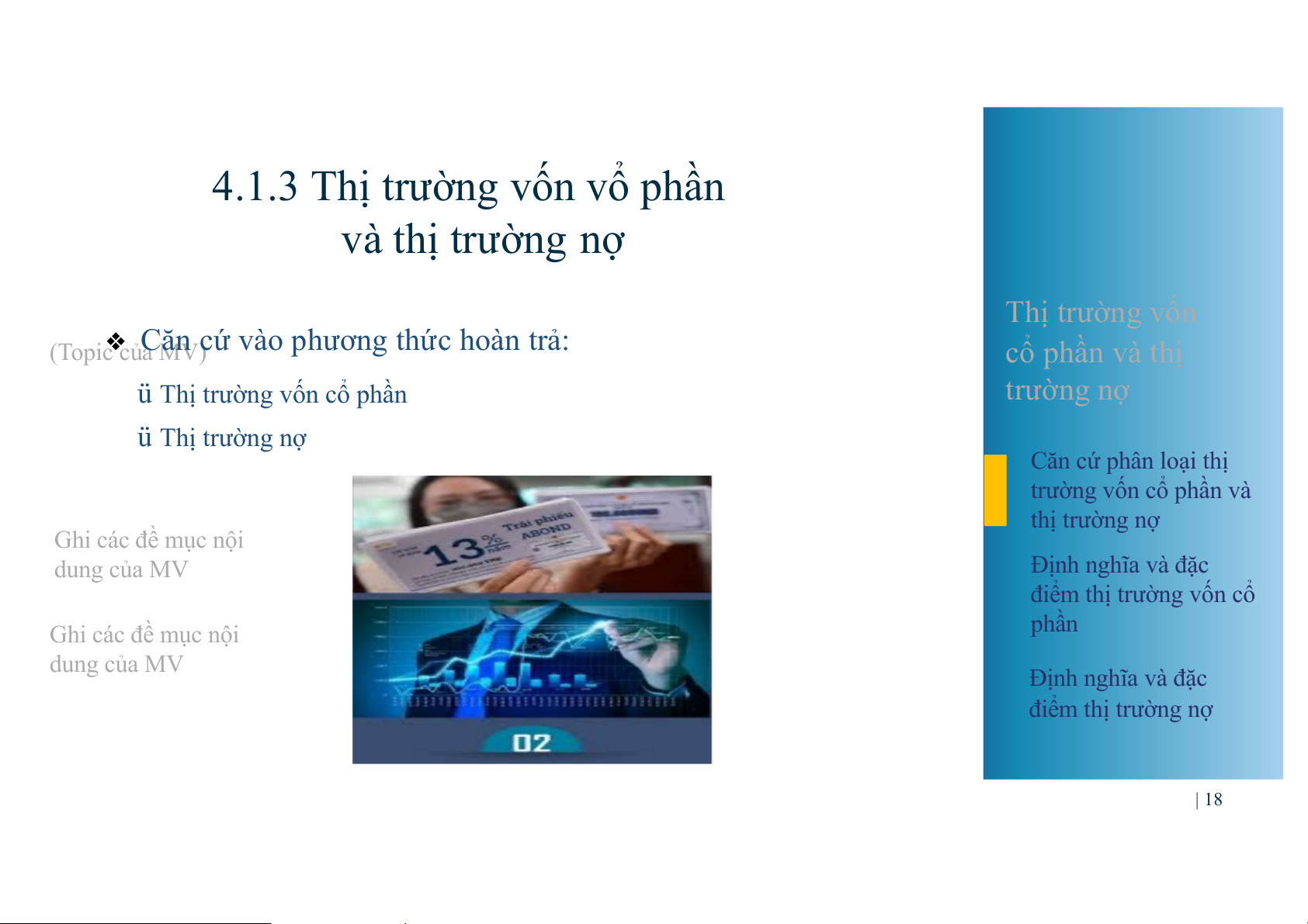 trường vốn cổ phần và thị trường nợ Ghi các đề mục nội dung của MV Định nghĩa và đặc