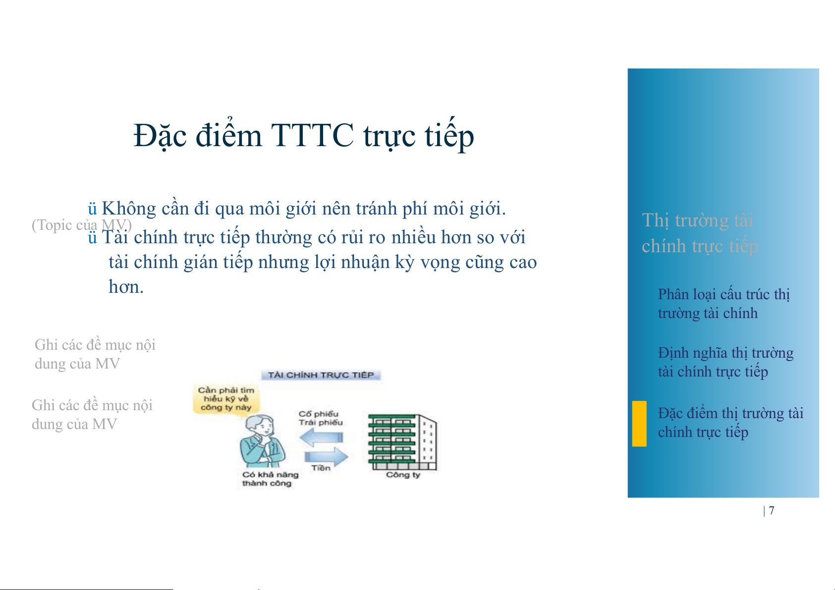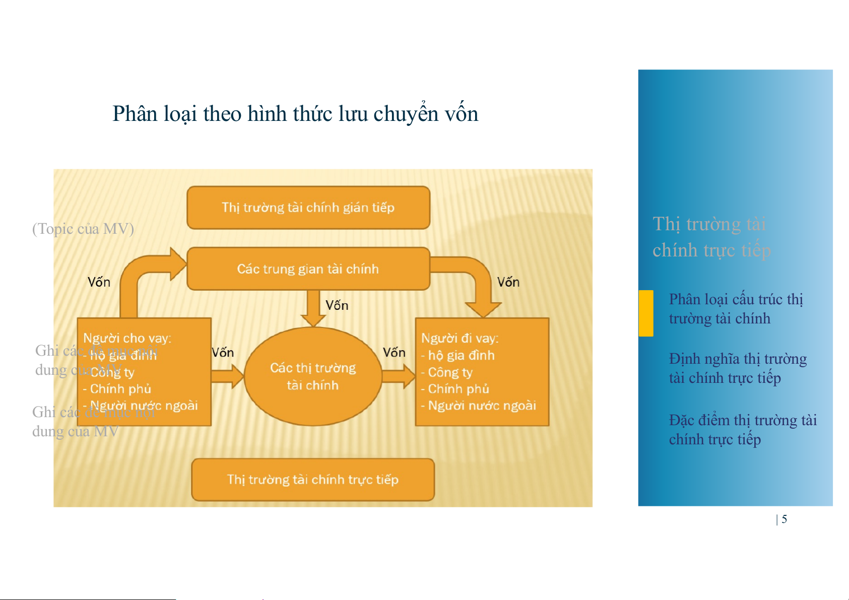 Phân loại theo hình thức lưu chuyển vốn (Topic của MV) Thị trường tài chính trực tiếp