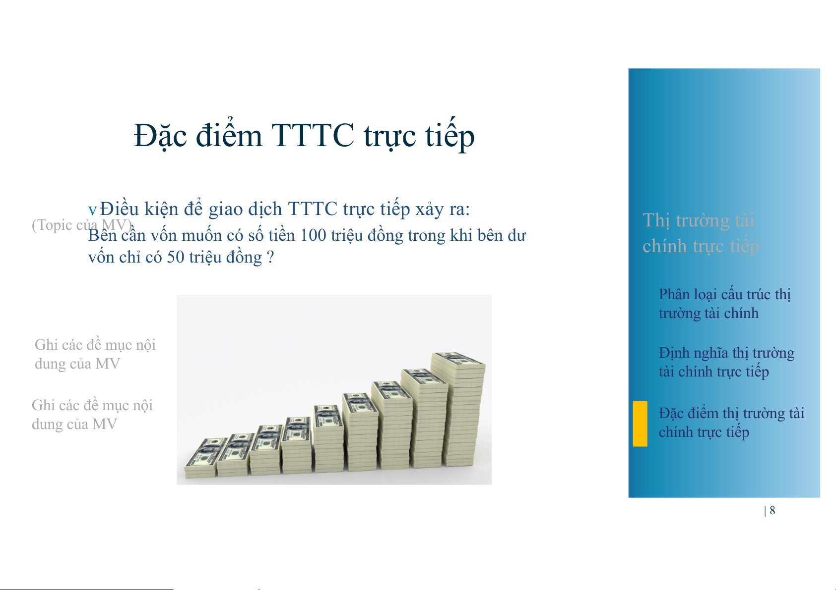 v Điều kiện để giao dịch TTTC trực tiếp xảy ra: (Topic của MV) Thị trường tài