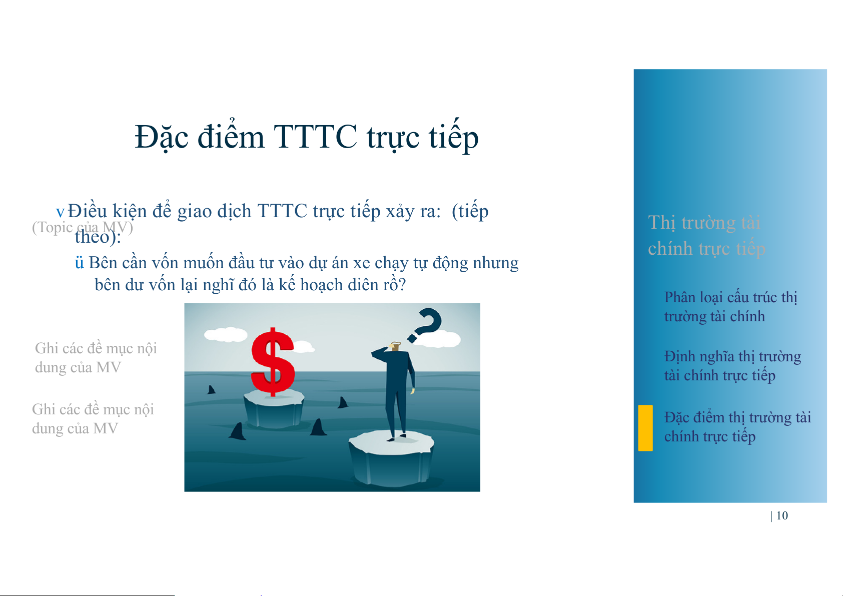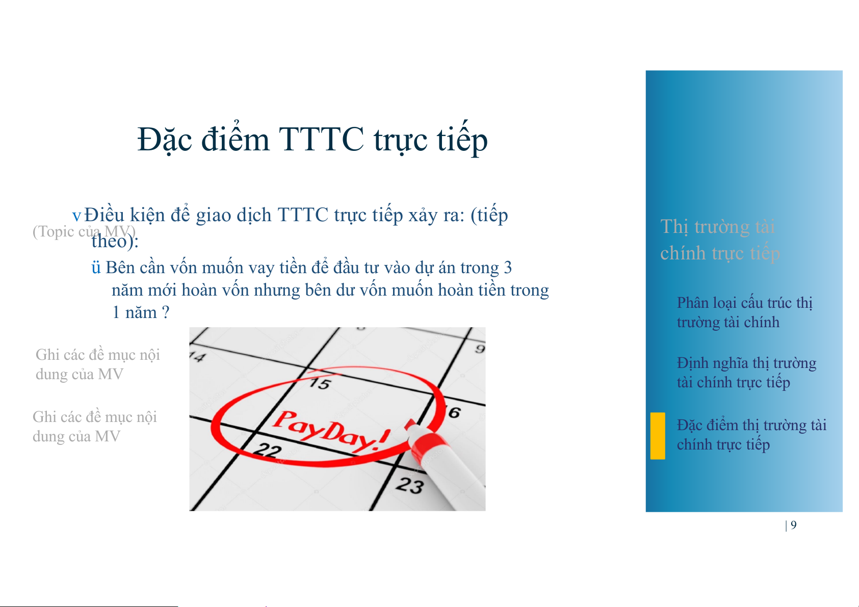 ❖ Các tiêu chí phân loại cấu trúc thị trường tài chính: (Topic của MV) Thị trường tài chính trực tiếp ü