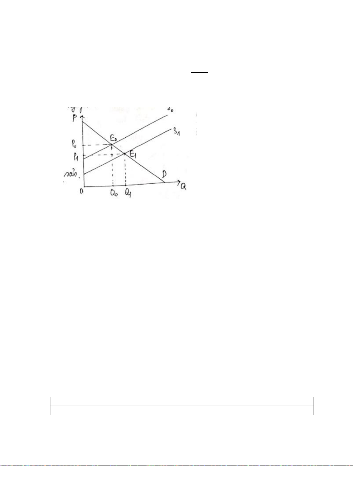 - Ban đâu thị trường cân bằng tại điểm E0. Do được mùa, cung nông sản tăng, đường