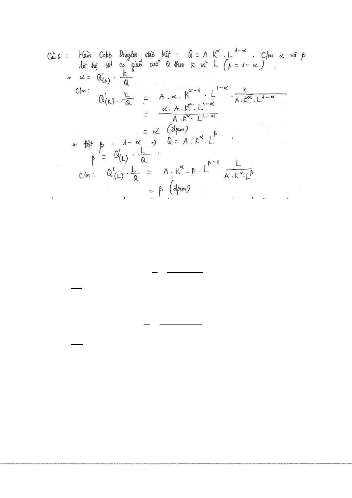 Câu 23: Hàm sản xuất không đổi theo qui mô. Chứng minh năng suất cận biên của