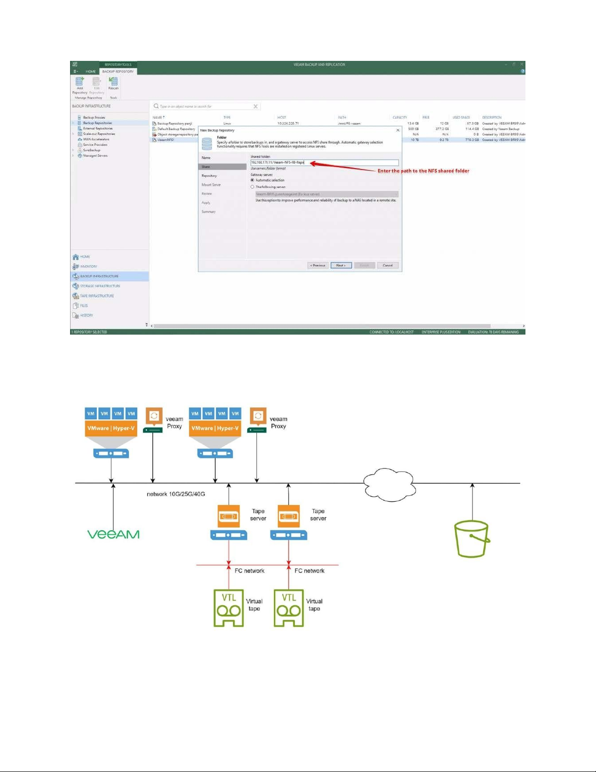 Với mô hình nfs hoặc vtl thì máy chủ veeam và nơi chứa backup image sẽ tương đối tách biệt, ngay cả