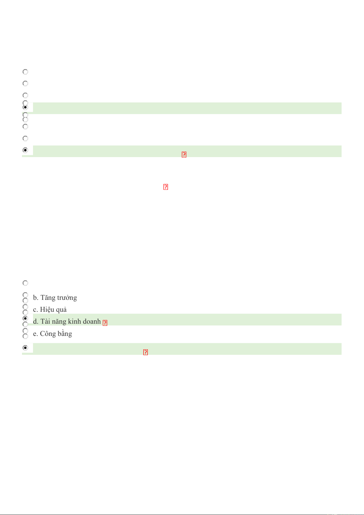 Chọn một câu trả lời: b. Tăng trưởng a. Cả giàu và nghèo c. Hiệu quả