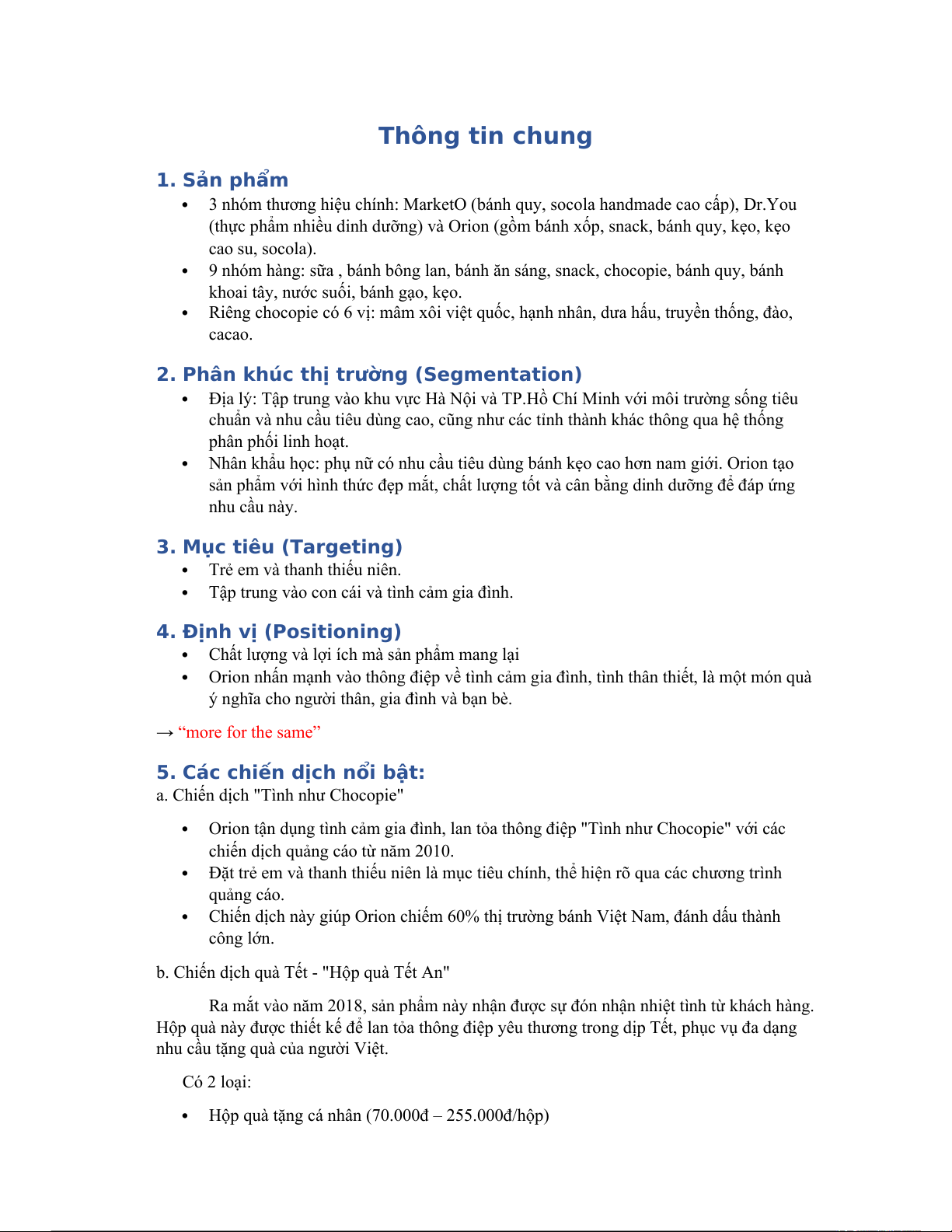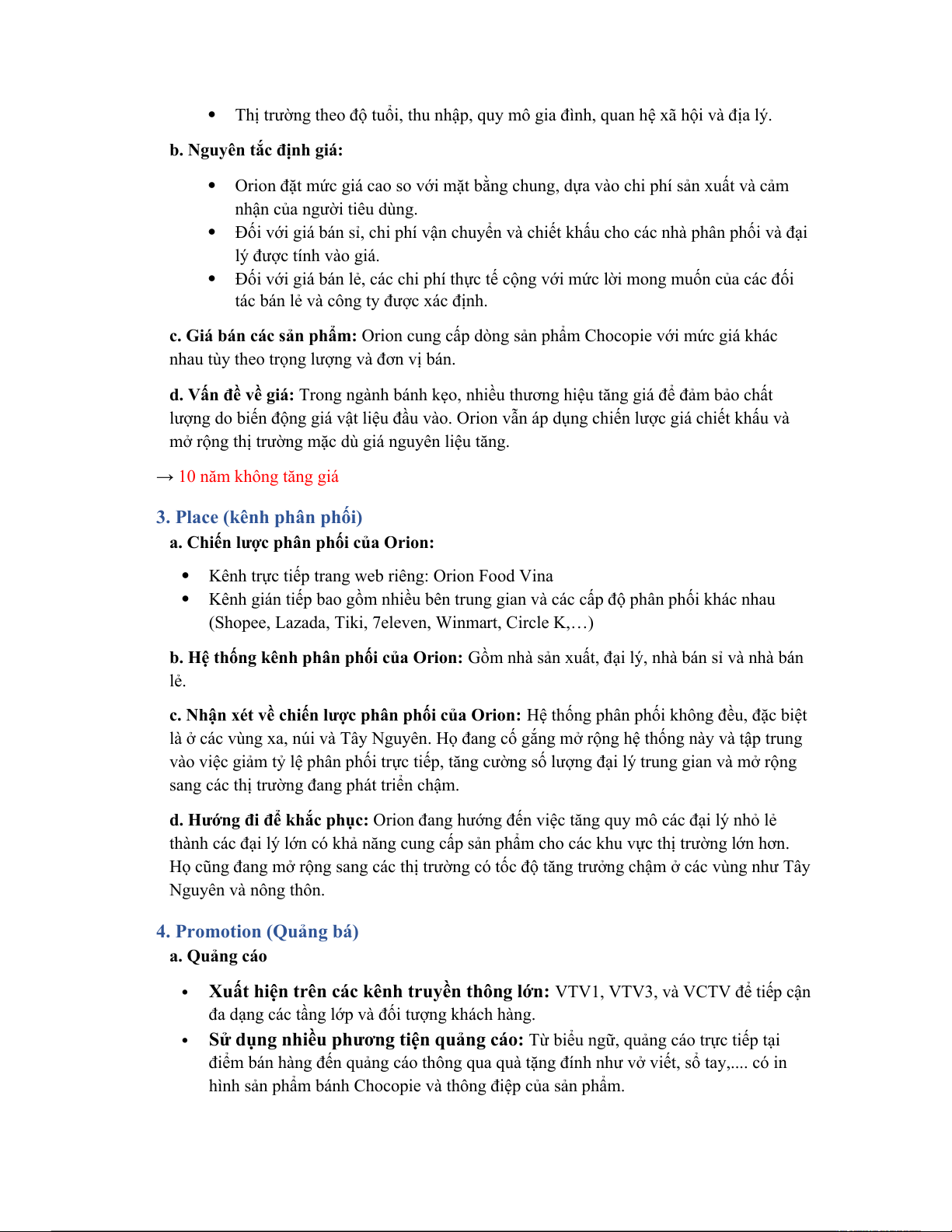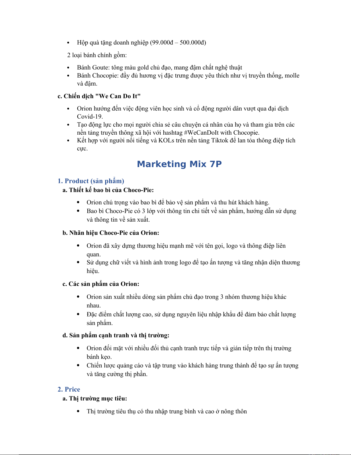 c. Giá bán các sản phẩm: Orion cung cấp dòng sản phẩm Chocopie với mức giá khác