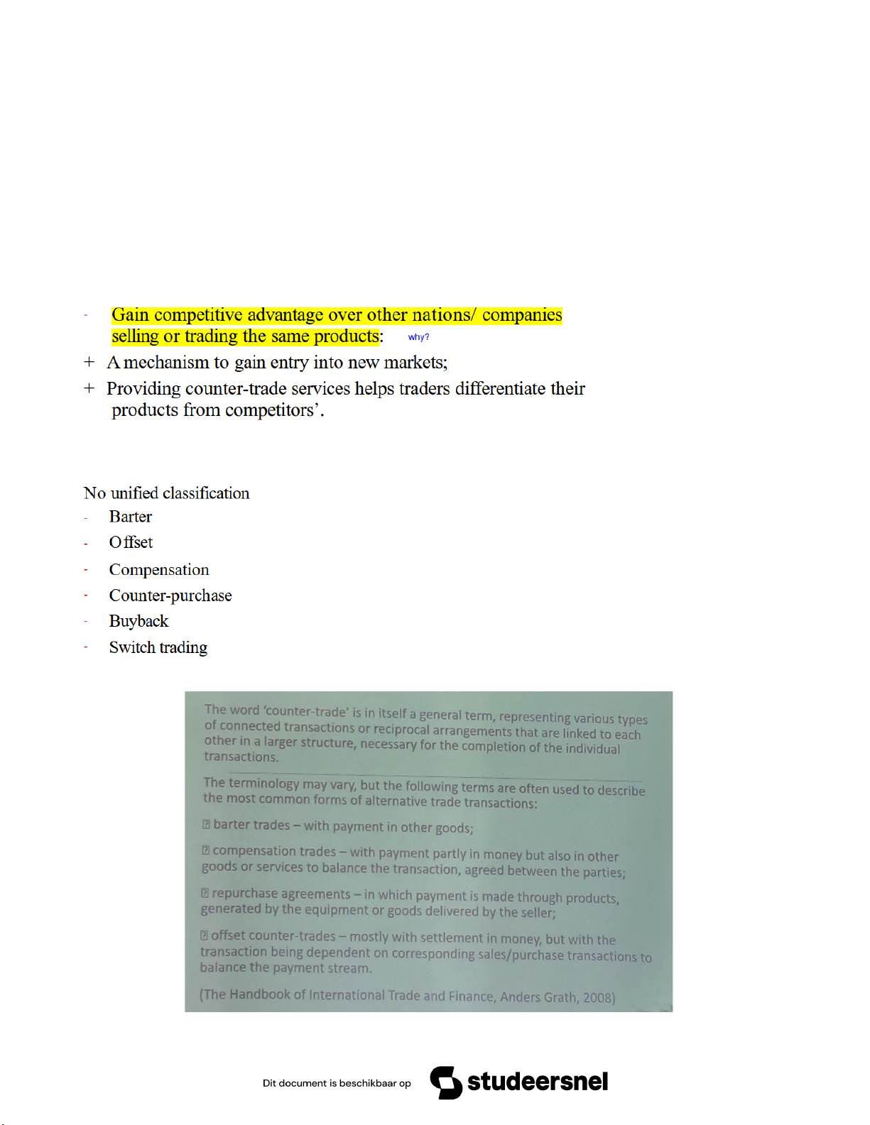 - if the low quality product => they can use countertrade to penetrate these low quality product =>