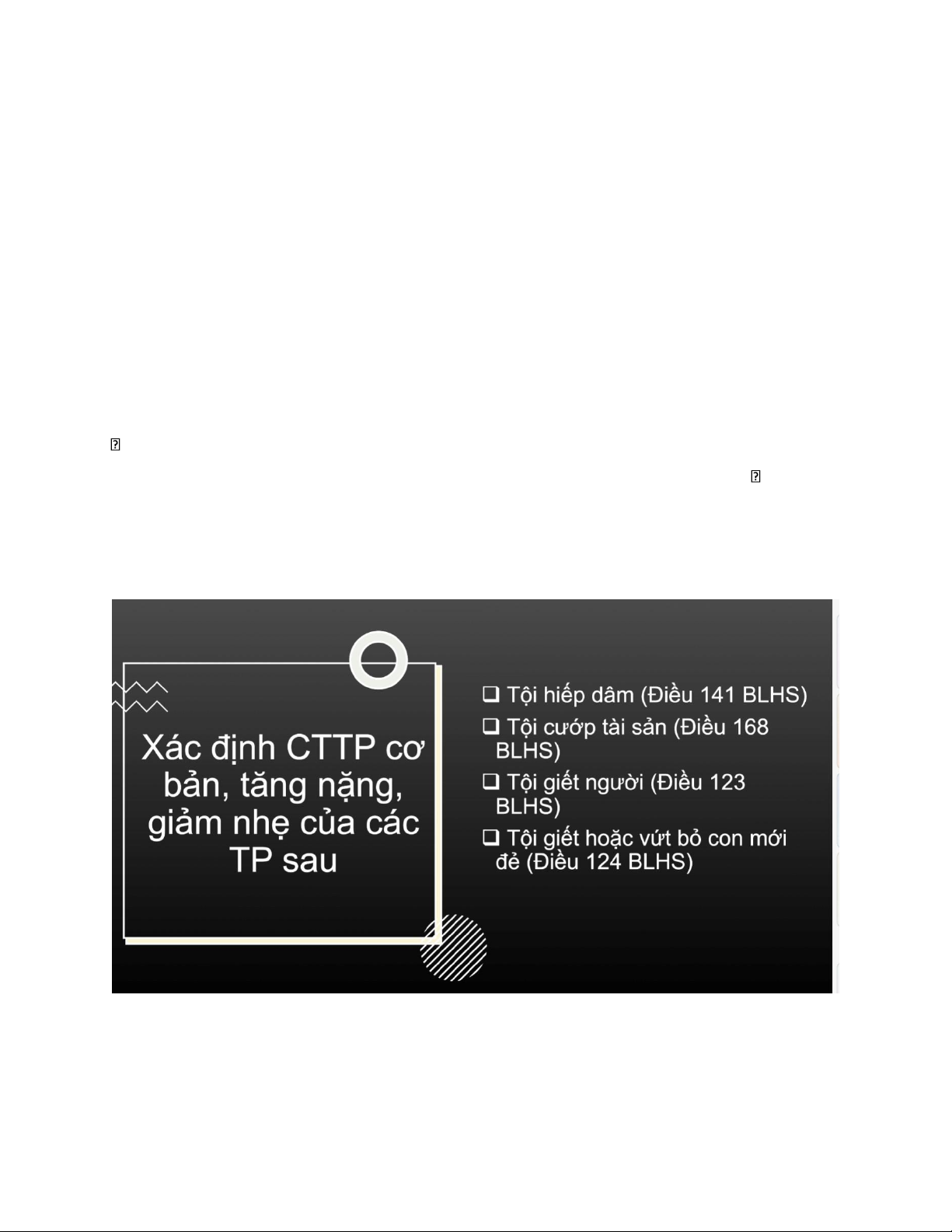 * Điều 123: cơ bản K2, tăng nặng k1 lOMoAR cPSD| 61716317 * Điều 124: Cơ bản k1,2 2.