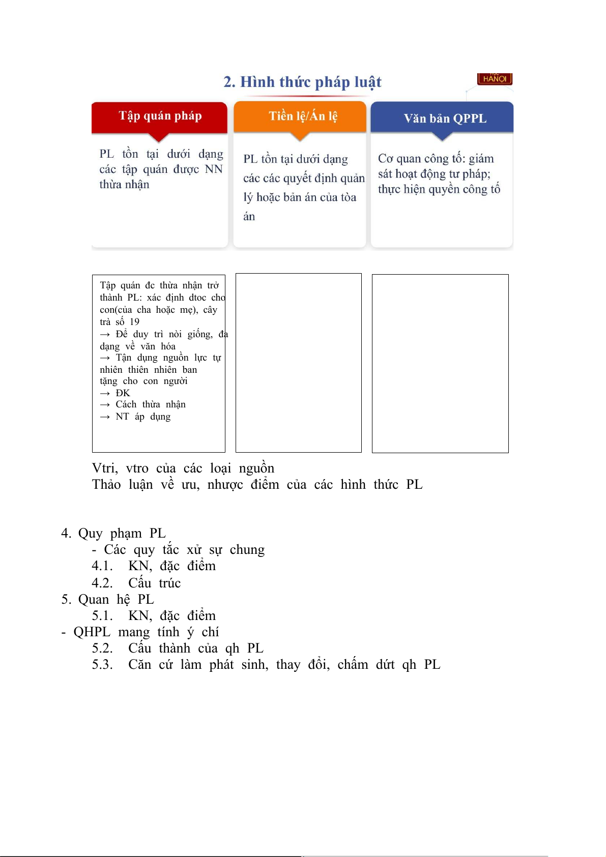 - Các quy tắc xử sự chung 4.1. KN, đặc điểm 4.2. Cấu trúc 5. Quan hệ PL 5.1. KN, đặc điểm - QHPL mang tính ý chí 5.2. Cấu thành của qh PL