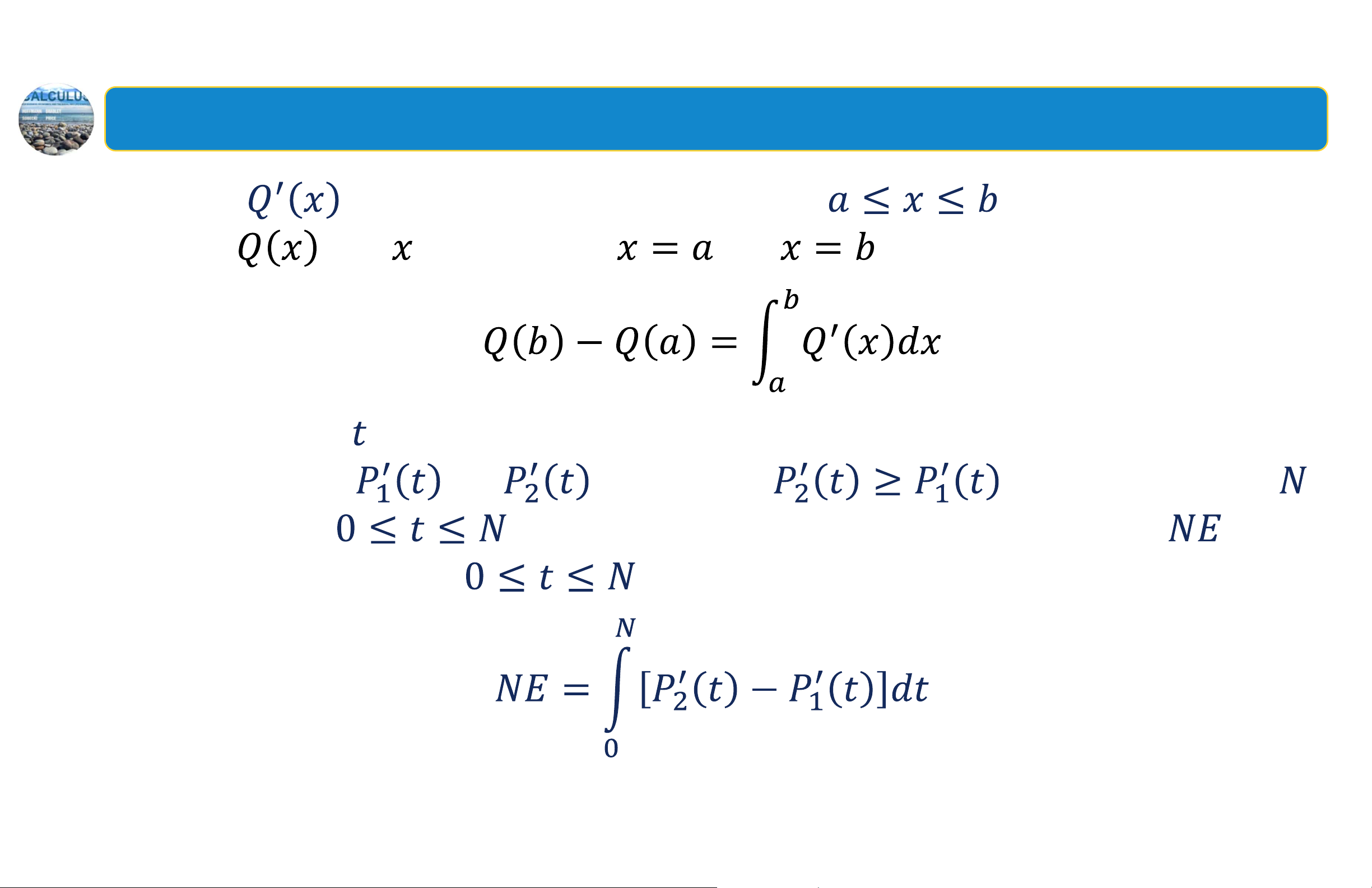 là hàm liên tục trên khoảng thì thay đổi ròng của khi thay đổi từ tới được xác định bởi: