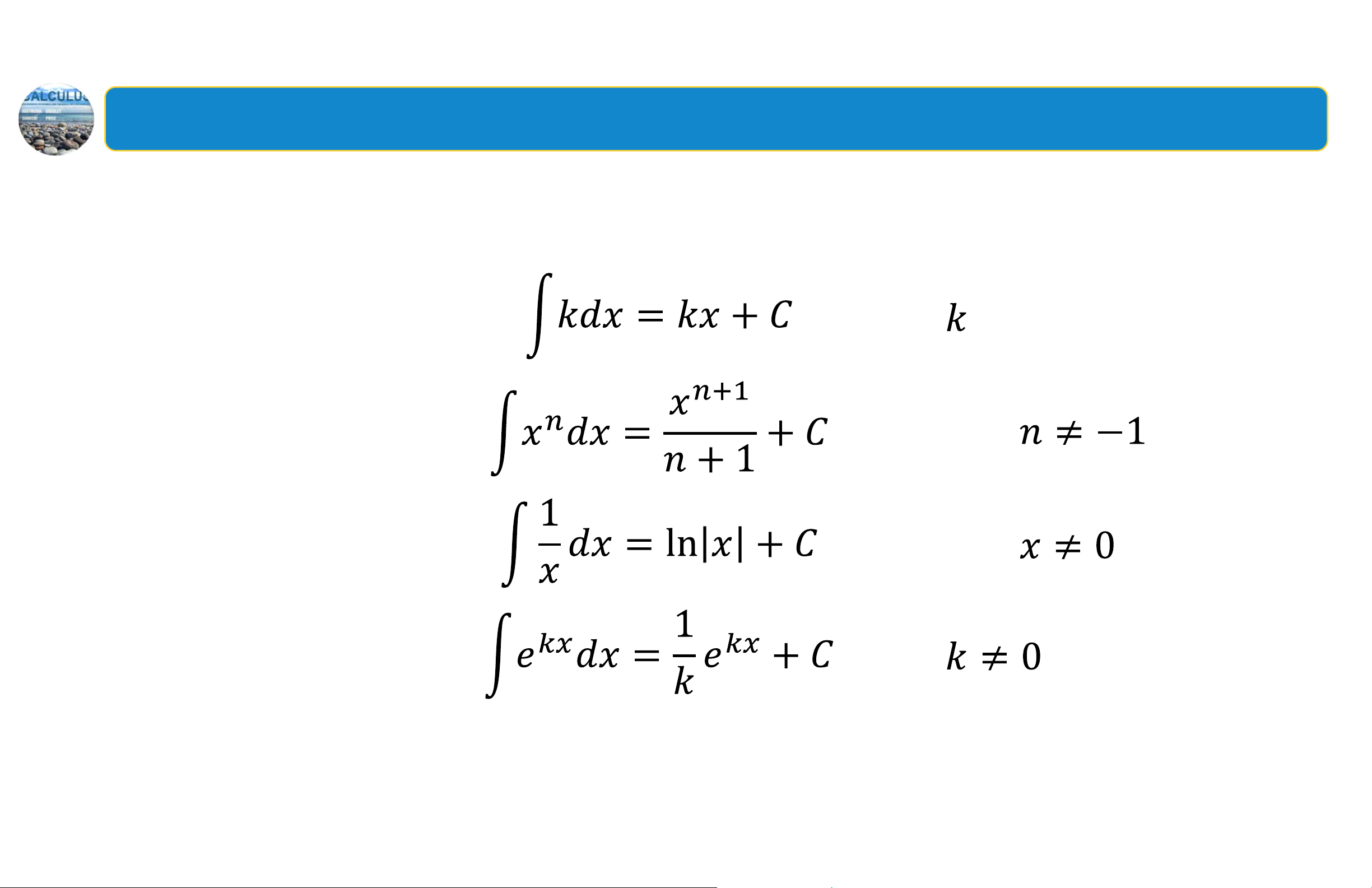 Quy tắc tính tích phân với các hàm thường gặp Quy tắc hằng: với là hằng số Quy tắc lũy thừa: với mọi Quy tắc logarit: với mọi Quy tắc mũ: với là hằng số 5