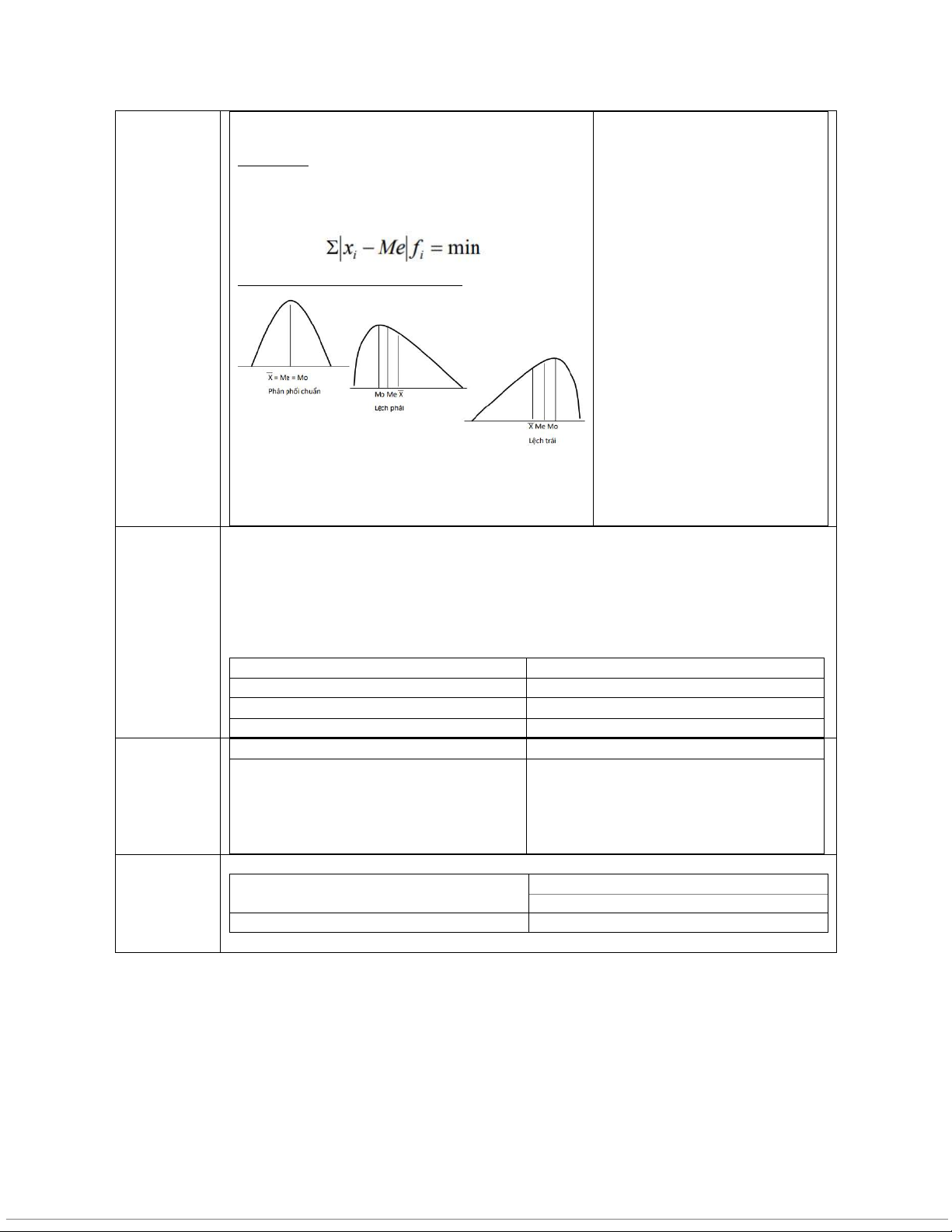 - Lệch phải: TB>Trung vị>Mốt - Lệch trái: TB