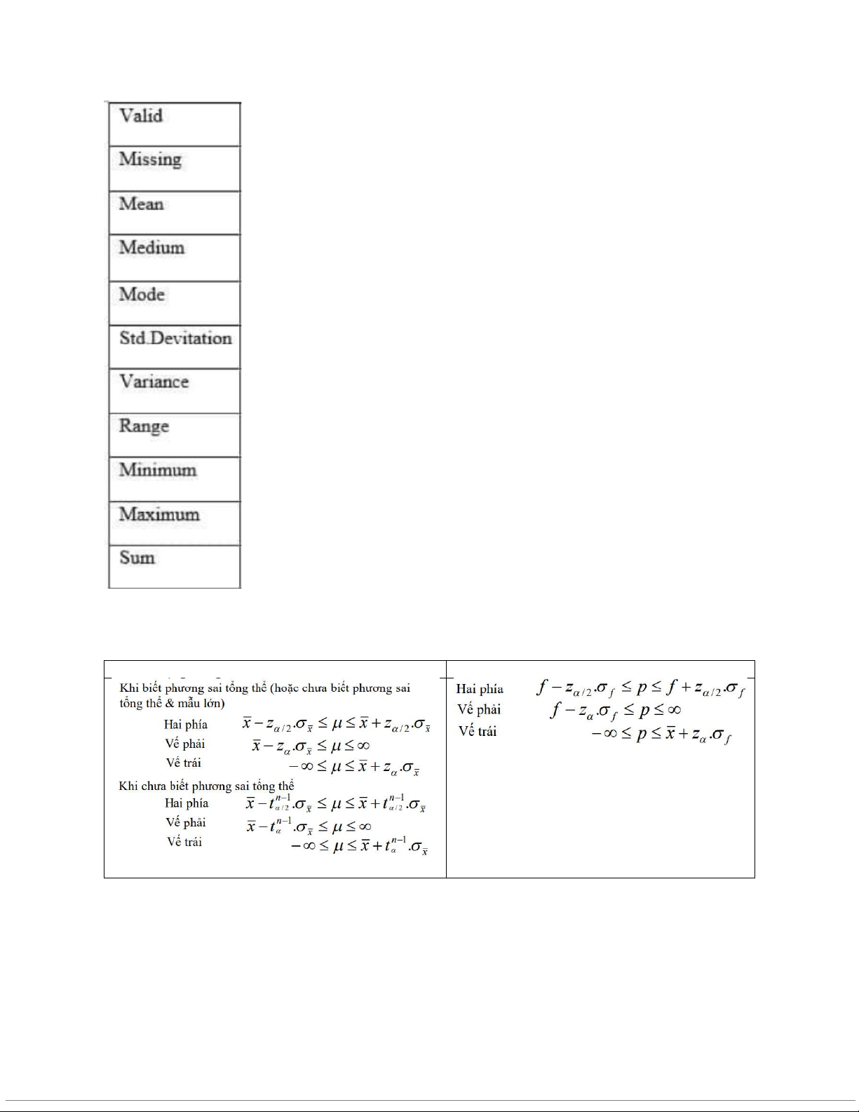 Hệ số tin cậy: Bảng Z trang 717, Bảng t trang 718