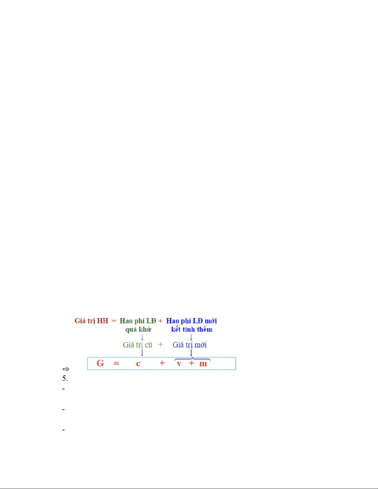 - Giá trị hàng hóa = Hao phí lao động quá khứ + Hao phí lao động mới kết tinh thêm.