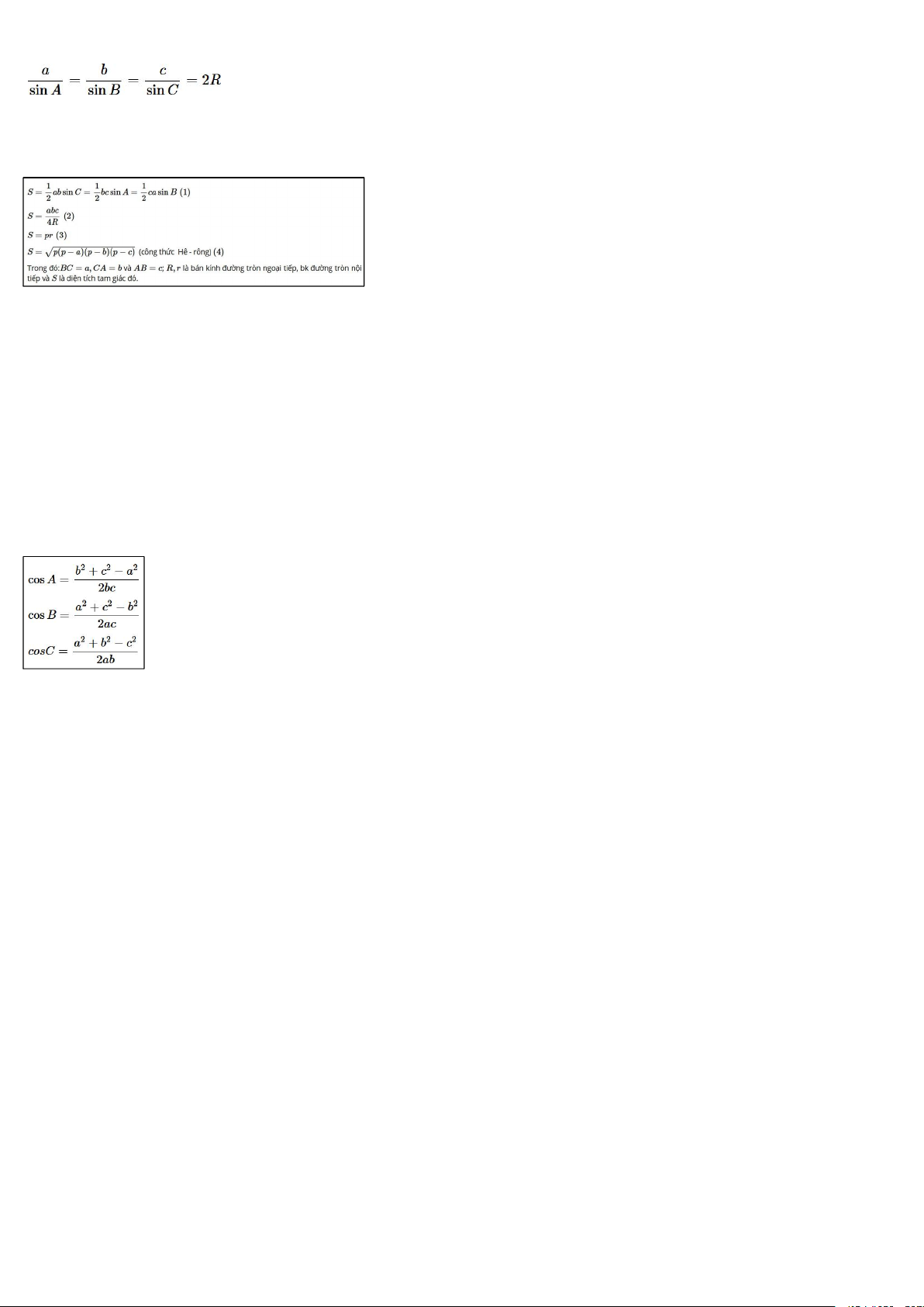 được nêu trong định lí cosin, định lí sin và các công thức tính diện tích tam giác.