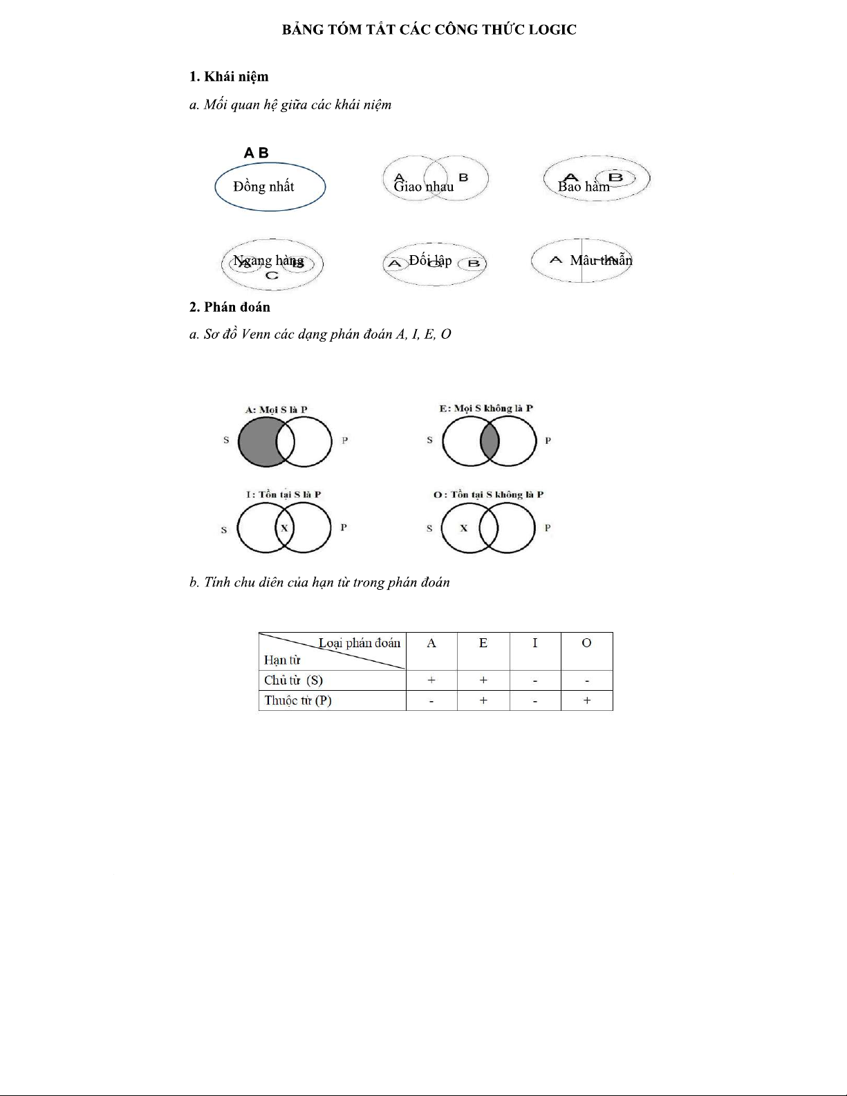 Tóm Tắt Công Thức Logic - Môn LOGIC 101