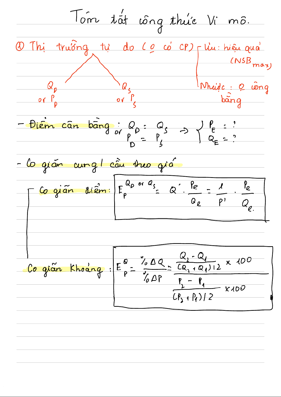 Tóm Tắt Công Thức môn Kinh tế vi mô | Trường Đại học Kinh Tế Quốc Dân
