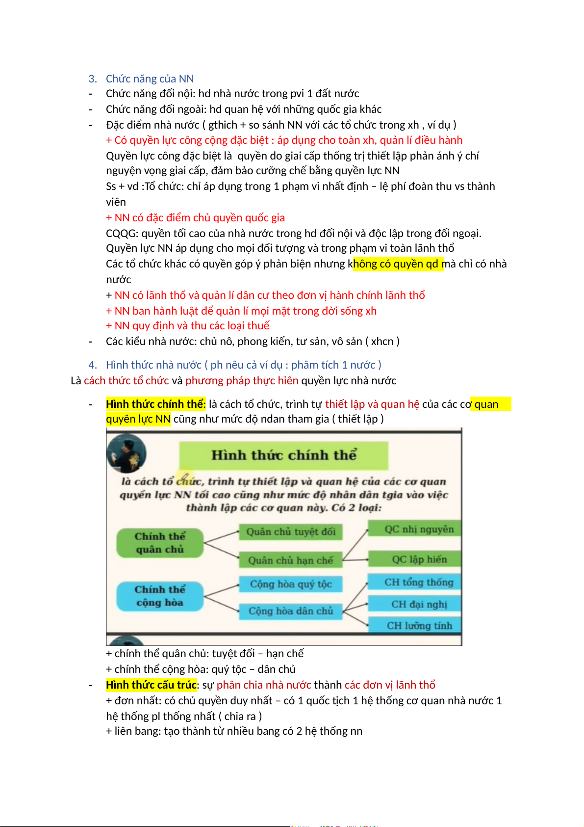 4. Hình thức nhà nước ( ph nêu cả ví dụ : phâm tích 1 nước )