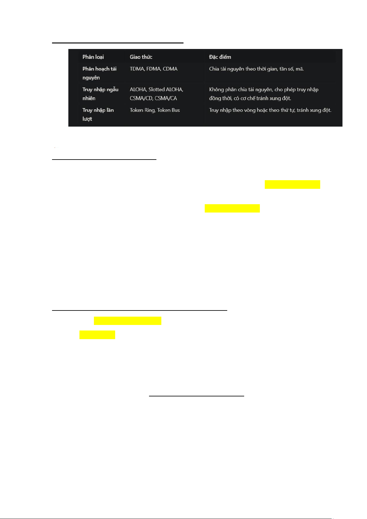 13. Tóm tắt các loại giao thức a truy nhập