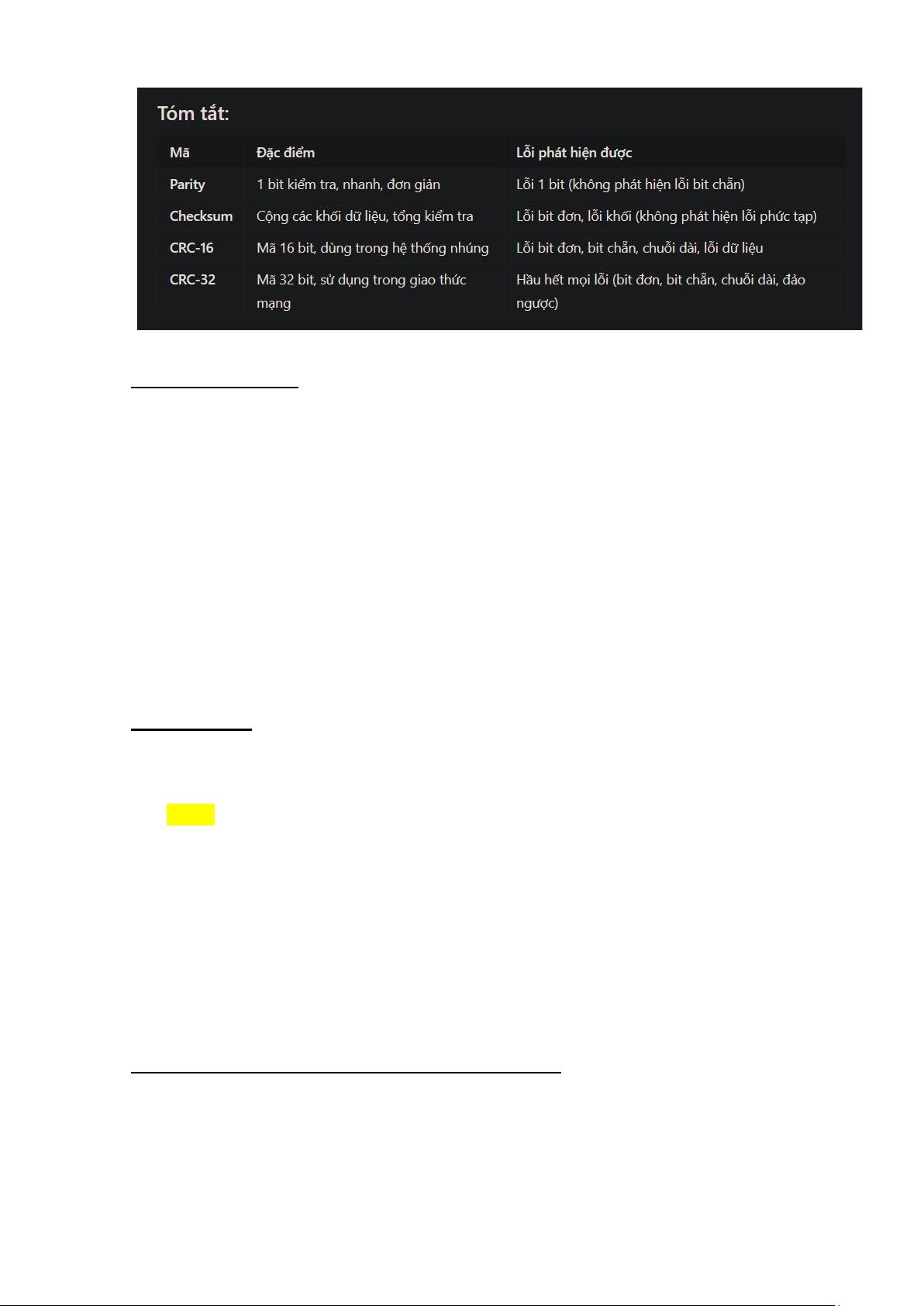 7. Tóm tắt các loại mã kiểm soát lỗi : lOMoAR cPSD| 61552860 8. Bài tập CheckSum