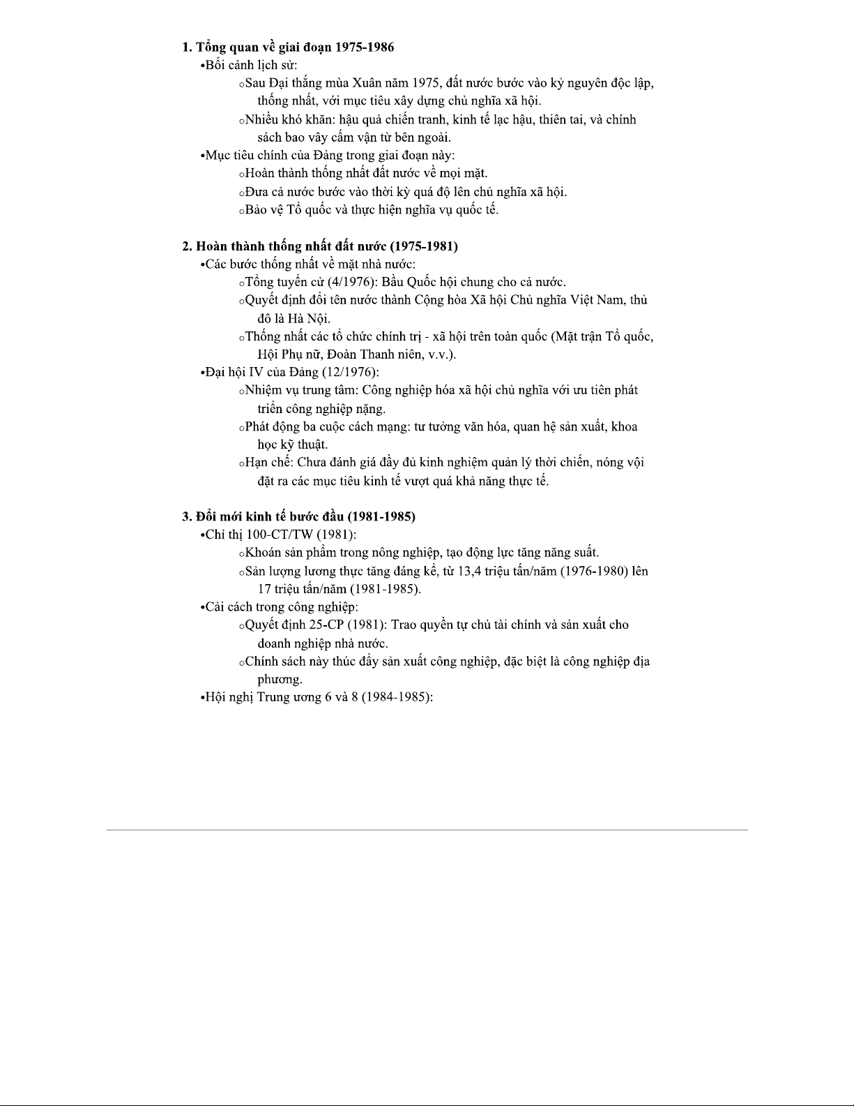 Tóm tắt giai đoạn 1975-1986: Sự nghiệp và thách thức kinh tế xã hội