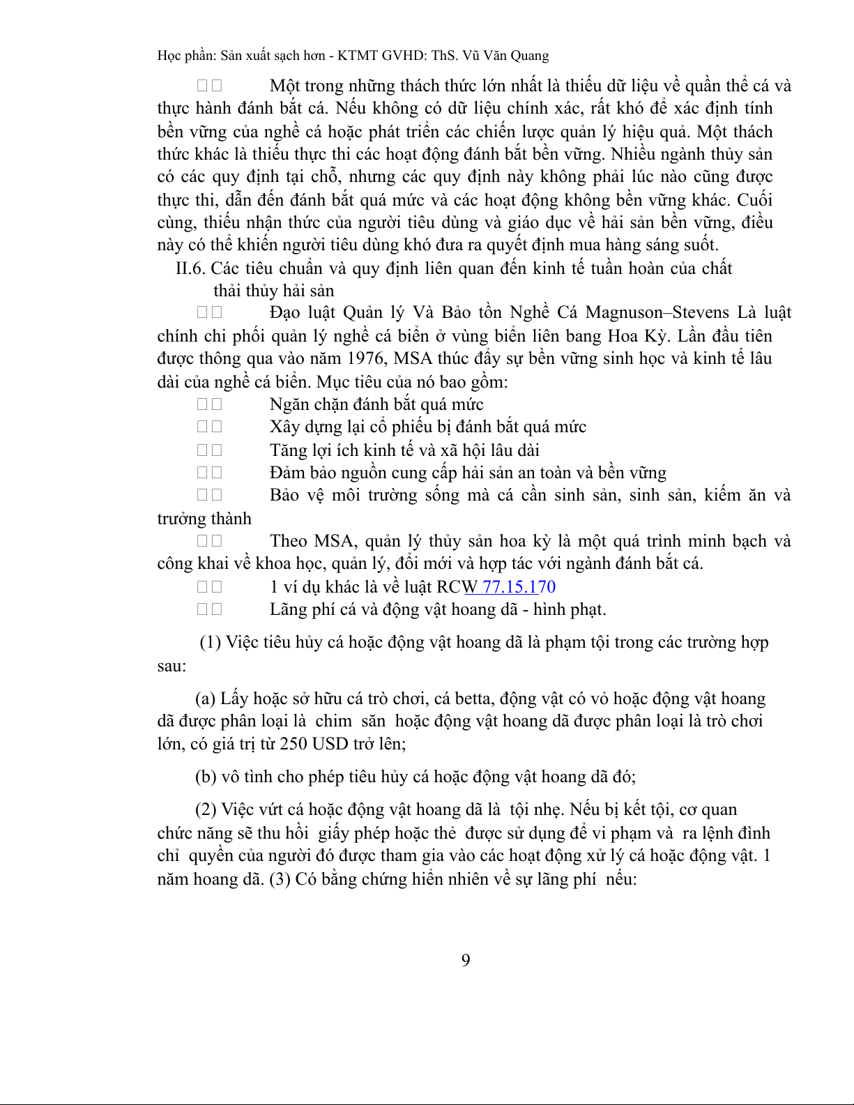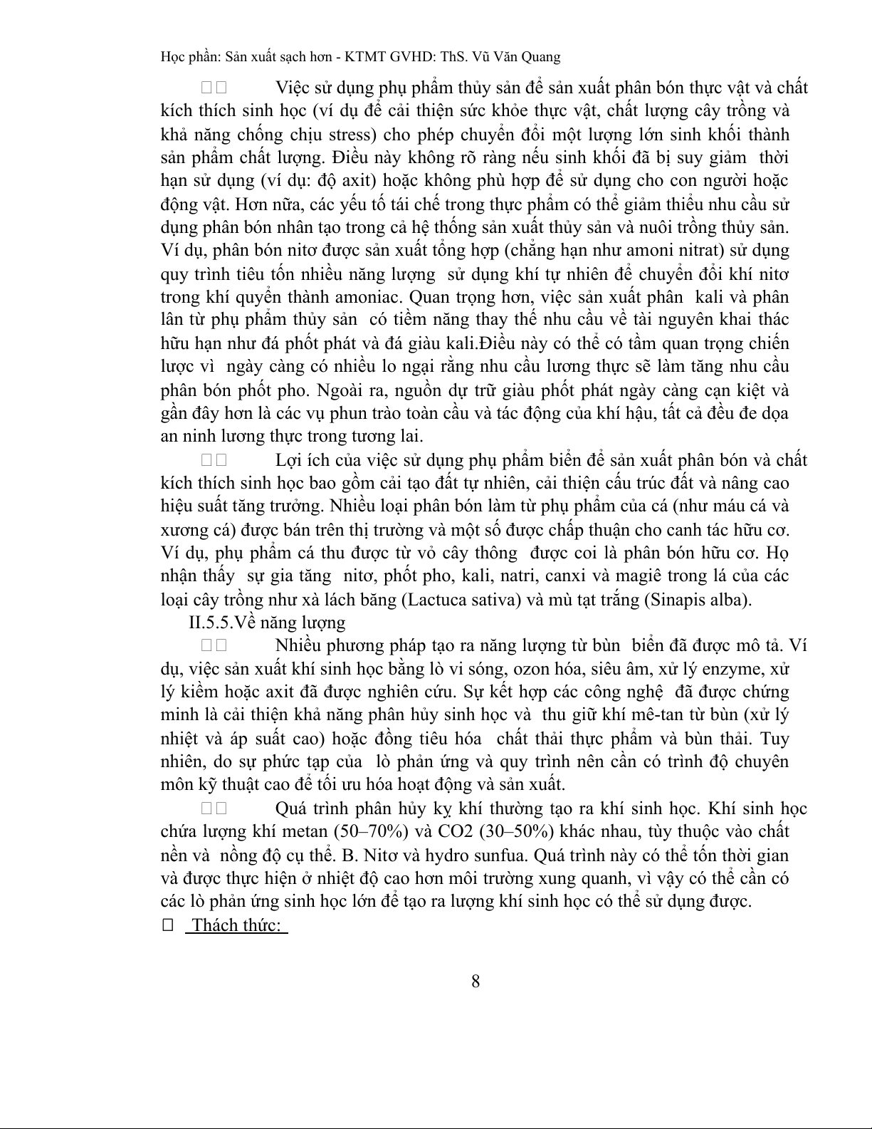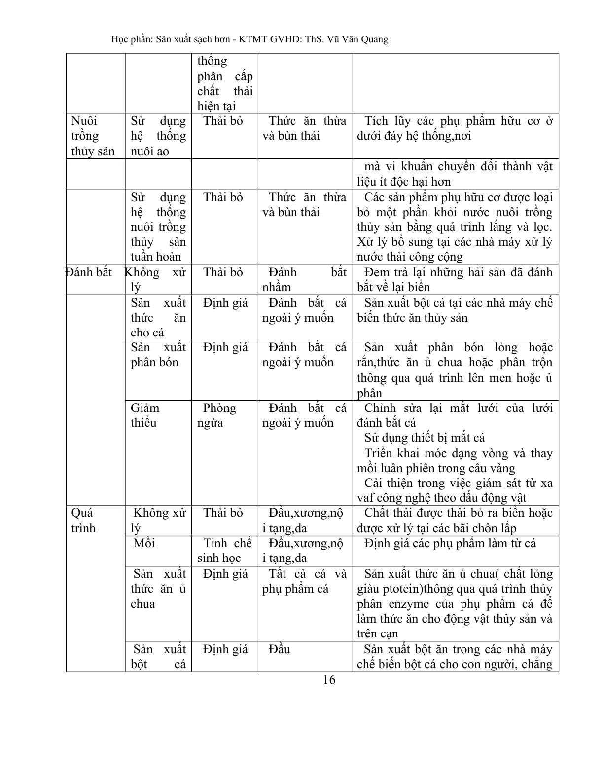 Học phần: Sản xuất sạch hơn - KTMT GVHD: ThS. Vũ Văn Quang ( dành cho