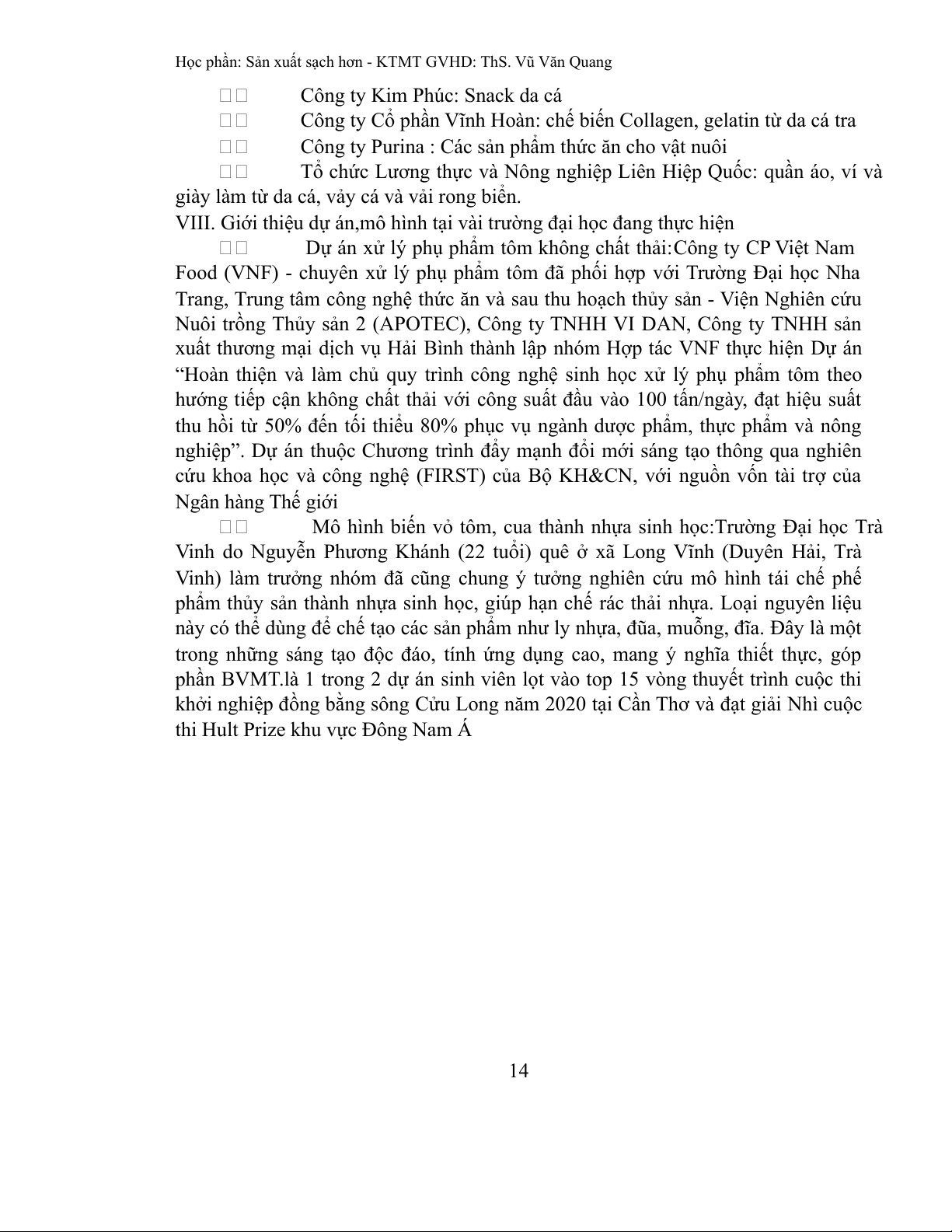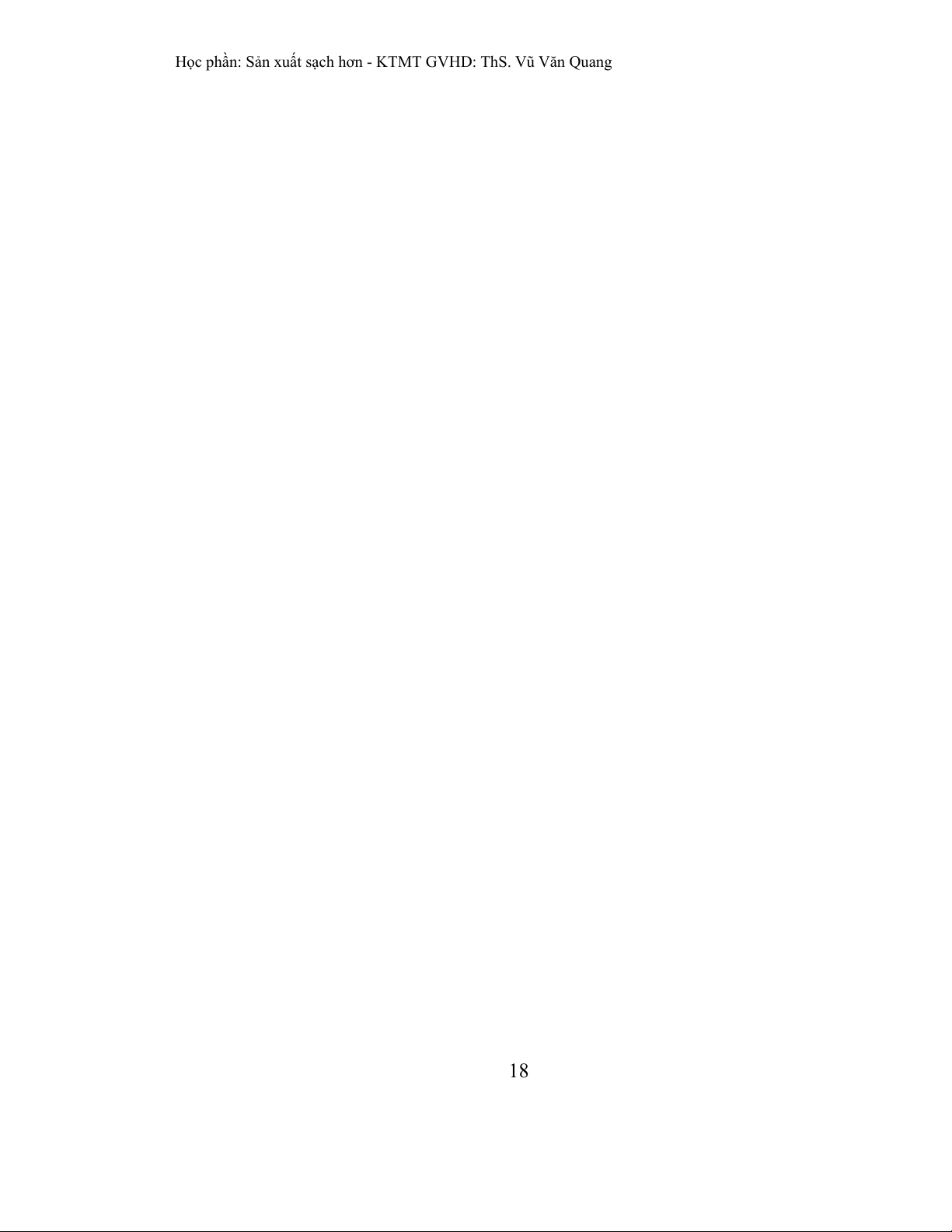 Học phần: Sản xuất sạch hơn - KTMT GVHD: ThS. Vũ Văn Quang 18