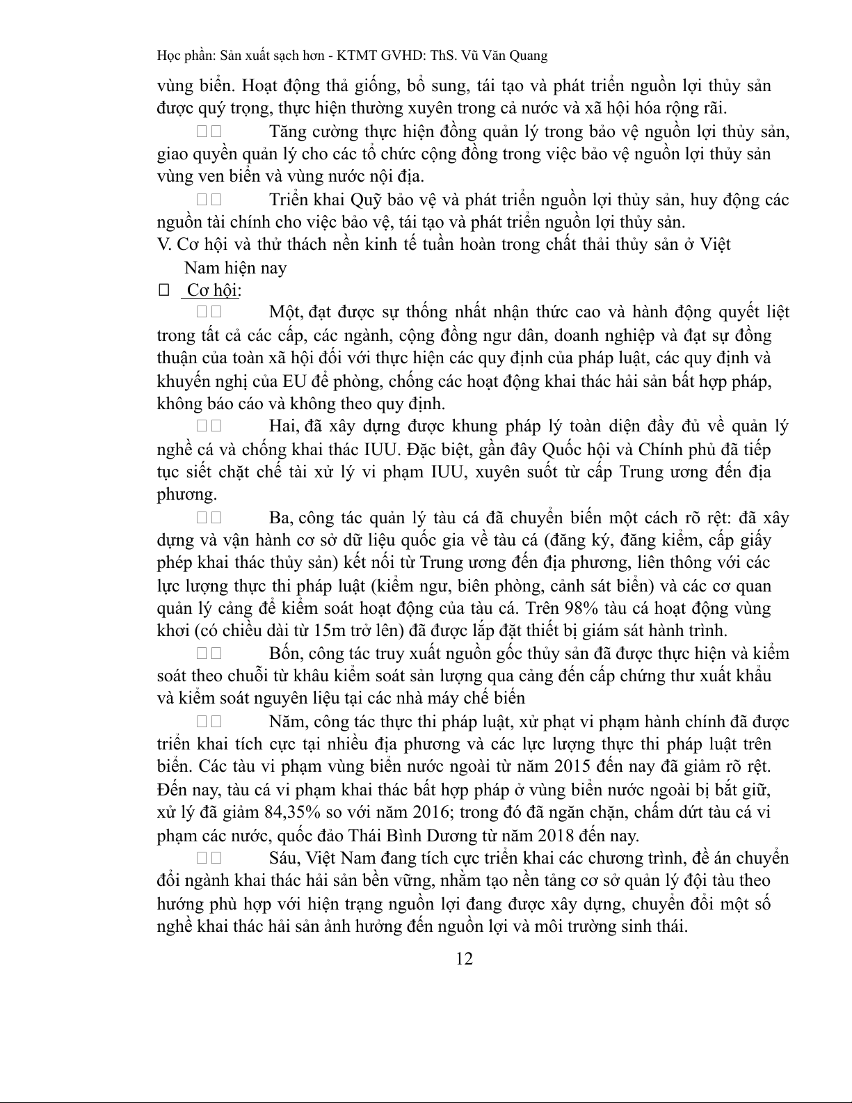 Học phần: Sản xuất sạch hơn - KTMT GVHD: ThS. Vũ Văn Quang