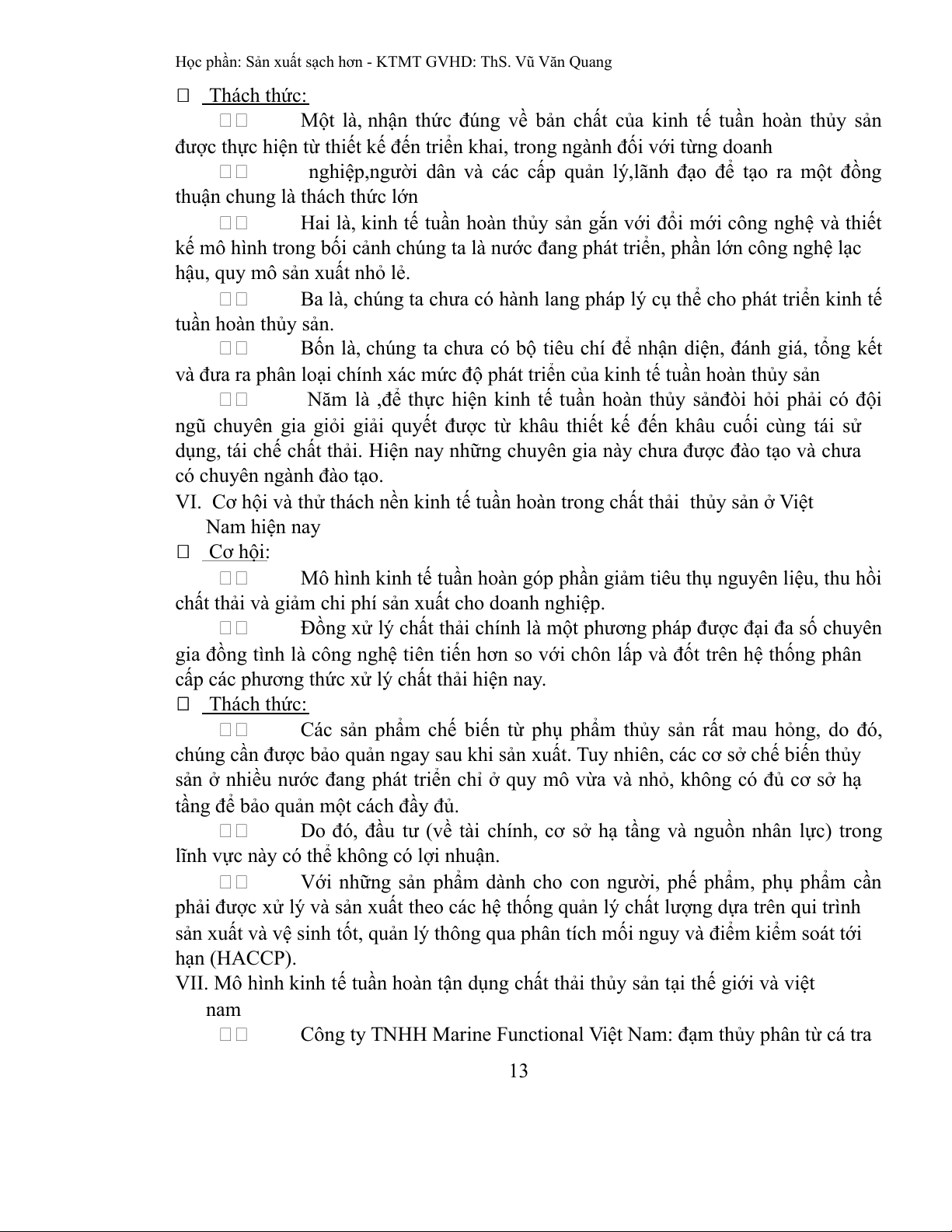 VI. Cơ hội và thử thách nền kinh tế tuần hoàn trong chất thải thủy sản ở