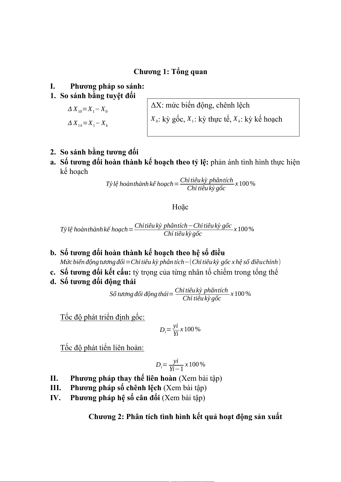 - Gốc so sánh: kỳ trước, kỳ kế hoạch