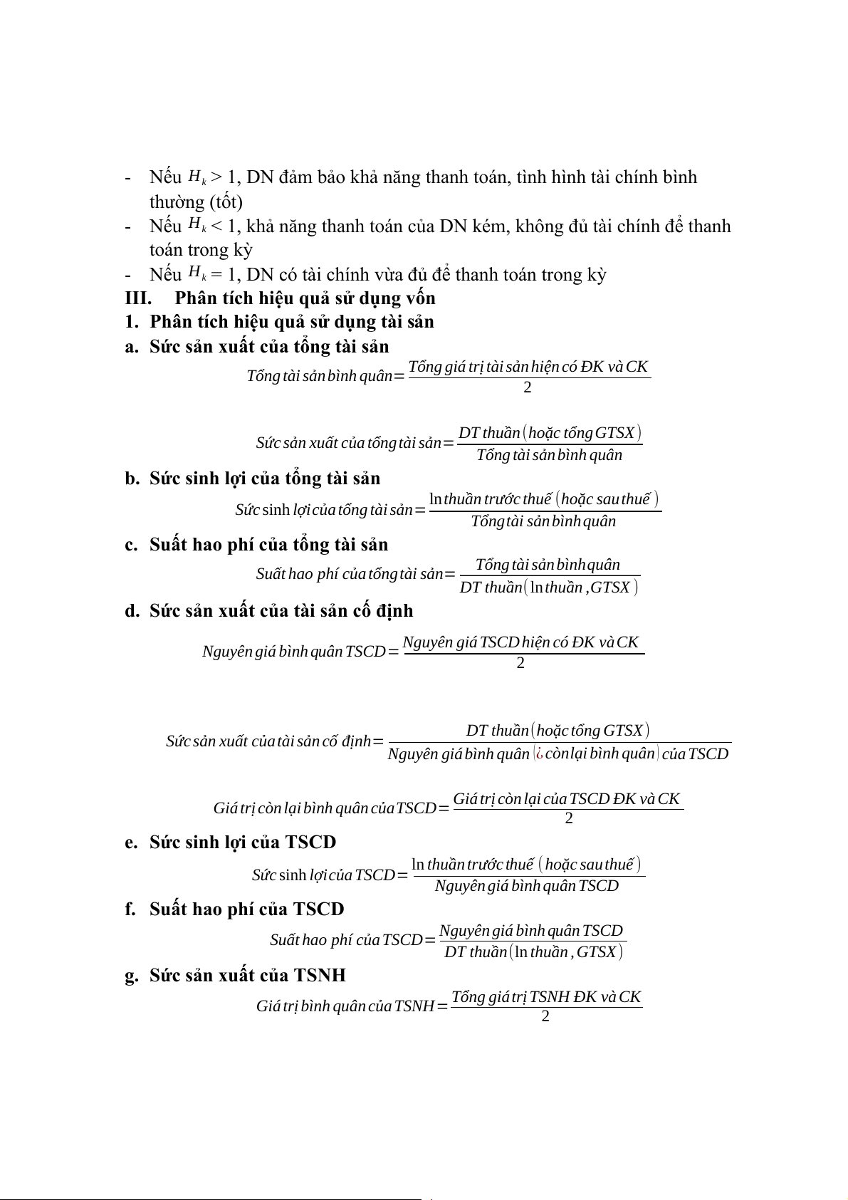 Sức sản xuất củaTSNH = TSNH bìnhquân