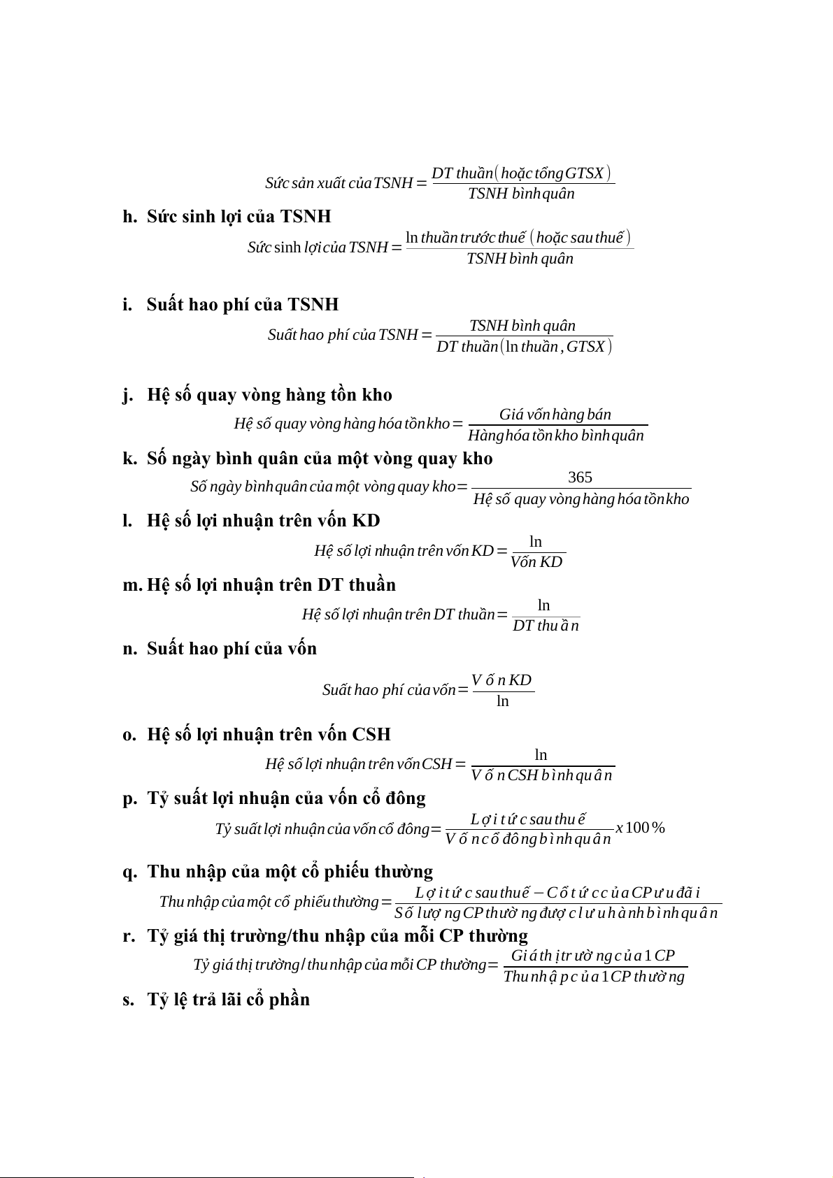 4. Các tỷ số phản ánh tốc độ chu chuyển vốn hàng hóa của DN