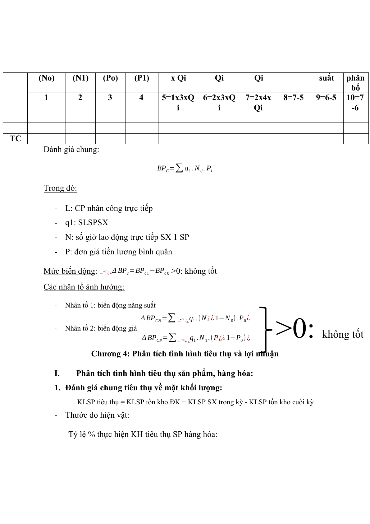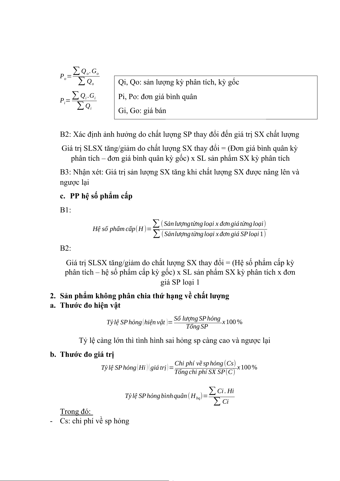 tích – hệ số phẩm cấp kỳ gốc) x SL sản phẩm SX kỳ phân tích x đơn giá SP cao nhất