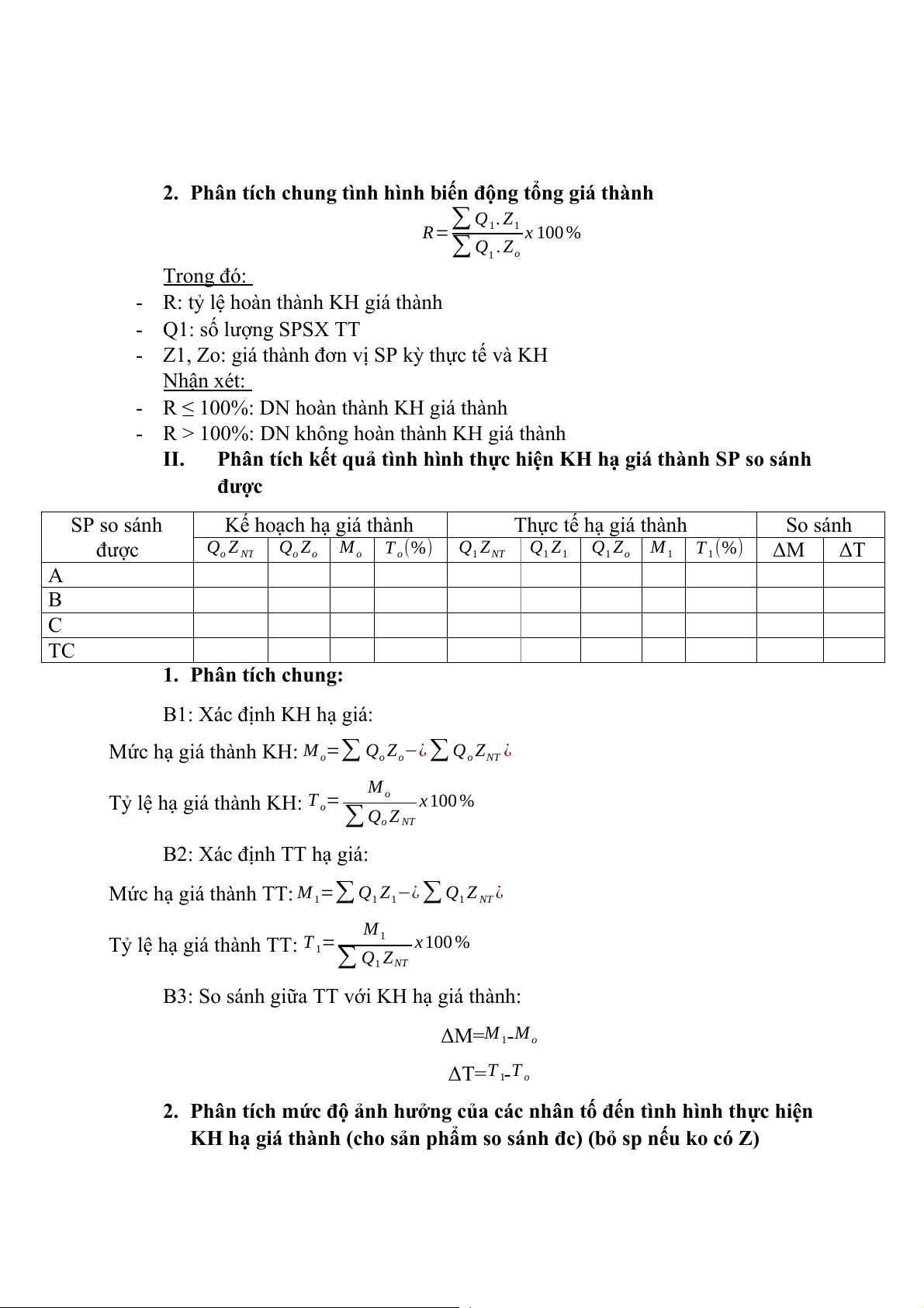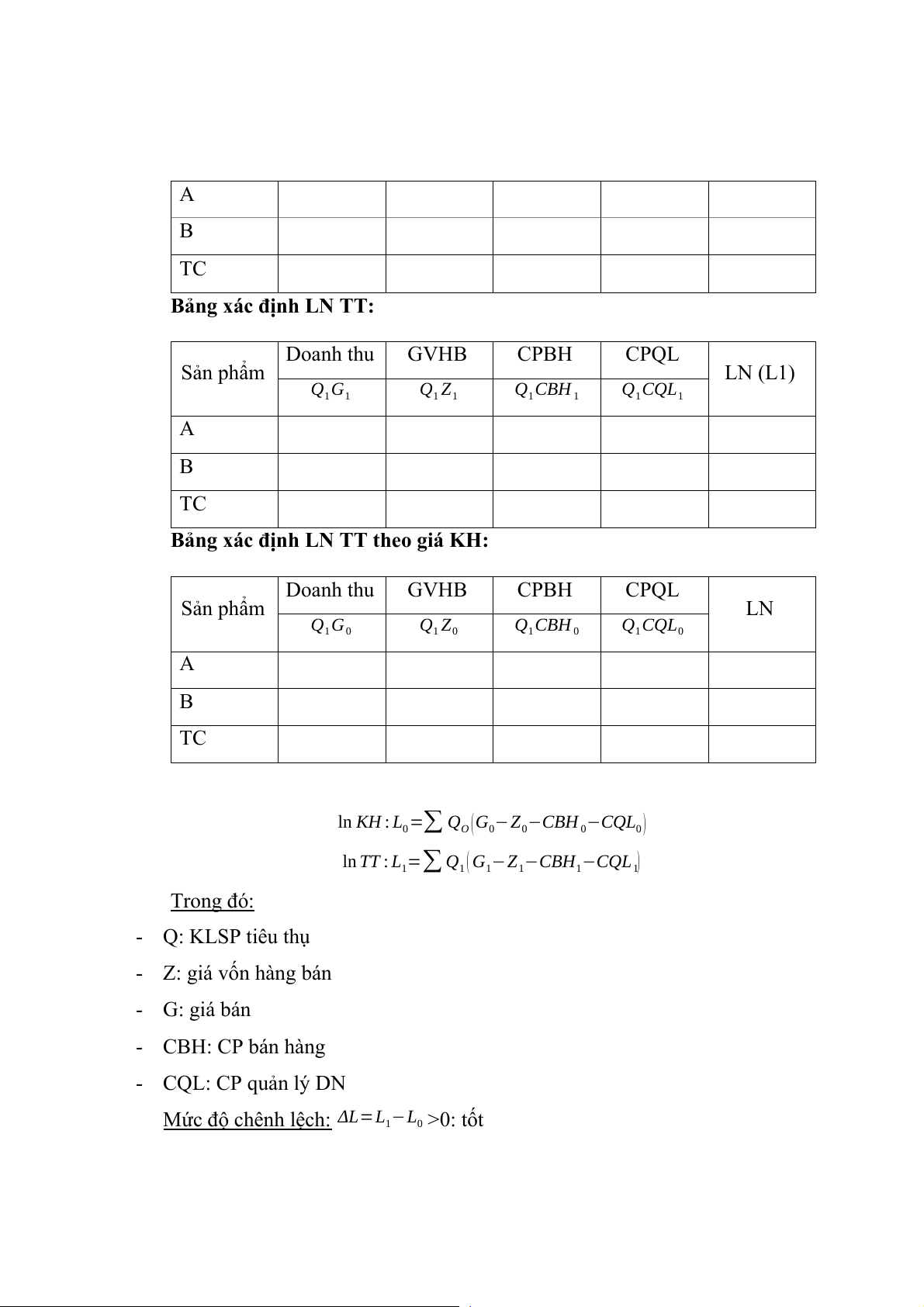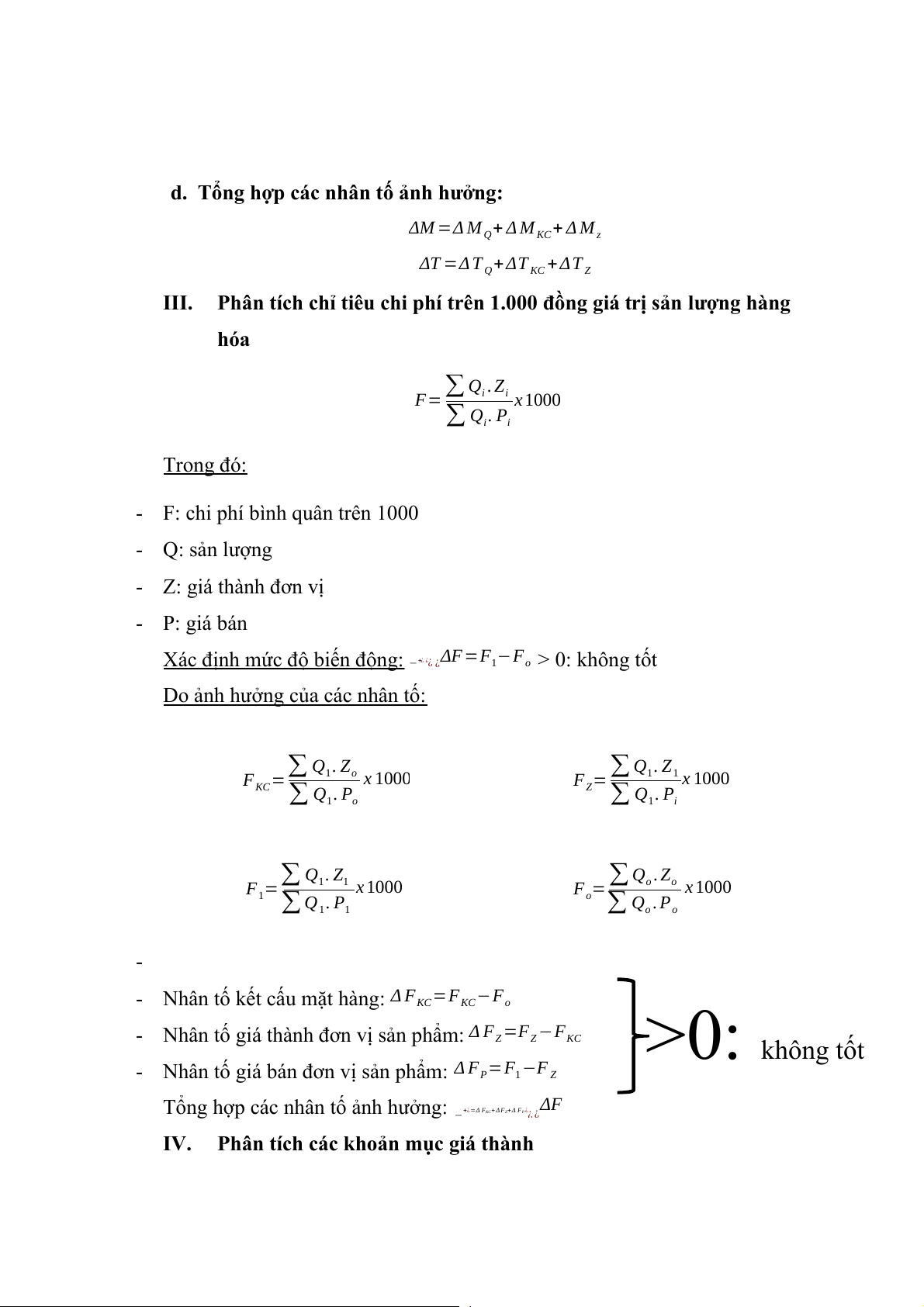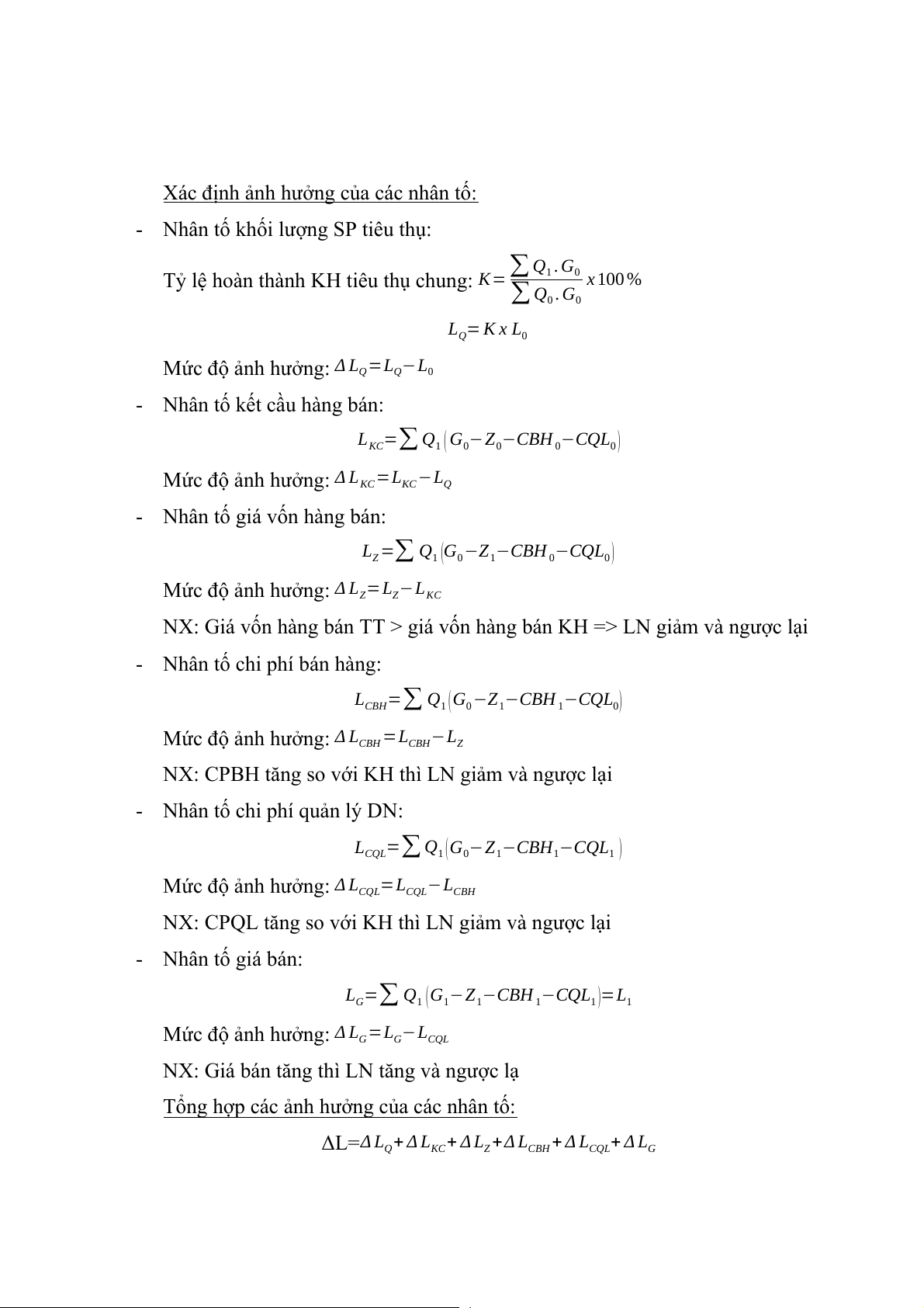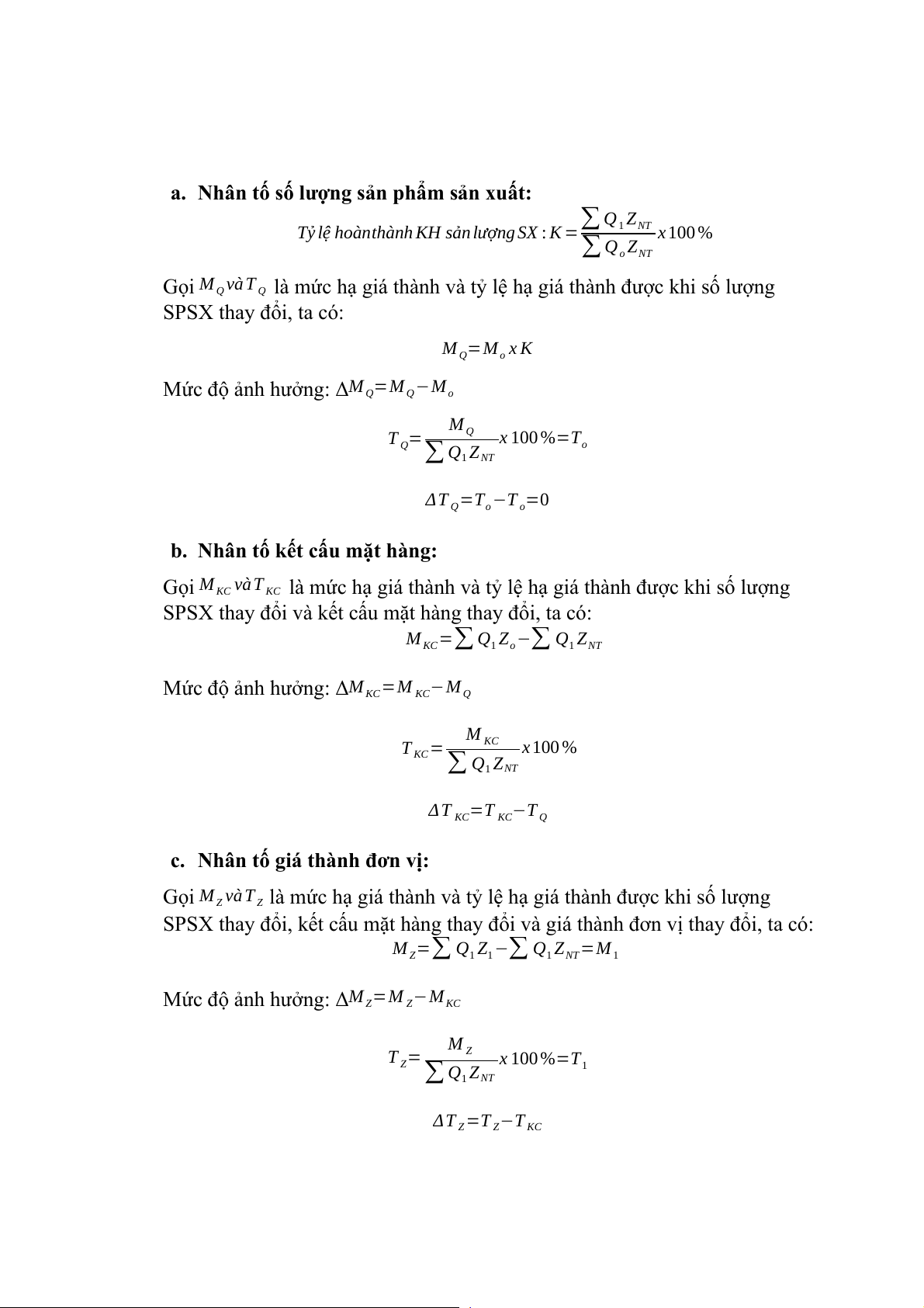 phân tích – đơn giá bình quân kỳ gốc) x SL sản phẩm SX kỳ phân tích