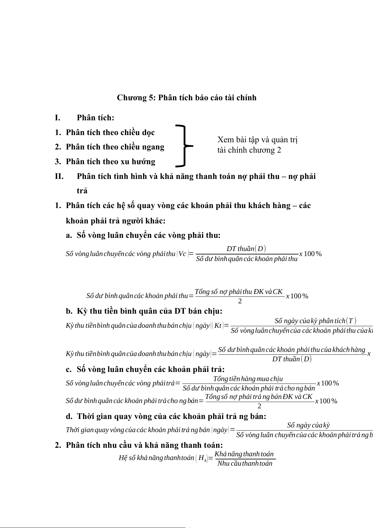 3. Các tỷ số phản ánh khả năng thanh toán các khoản phải thu