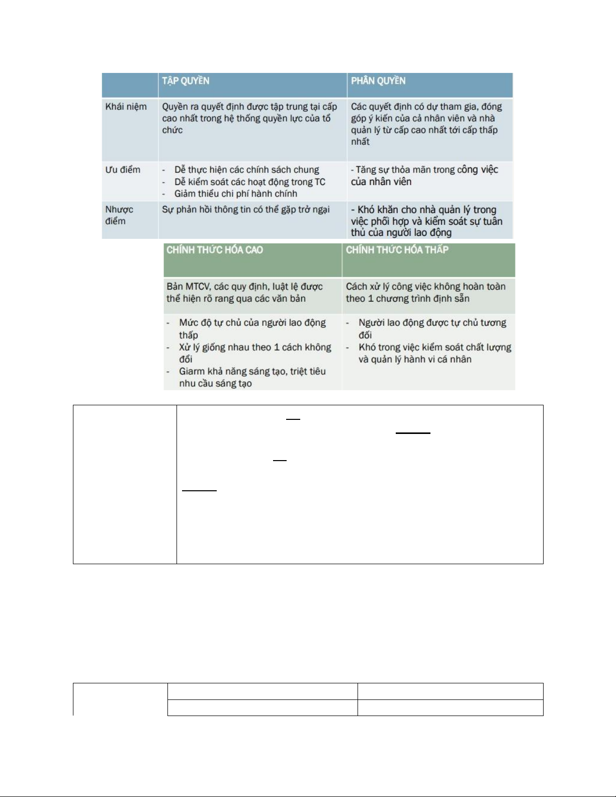 sự phân chia trách nhiệm, quyền lợi rõ ràng Nhược: k phù hợp vs qmo