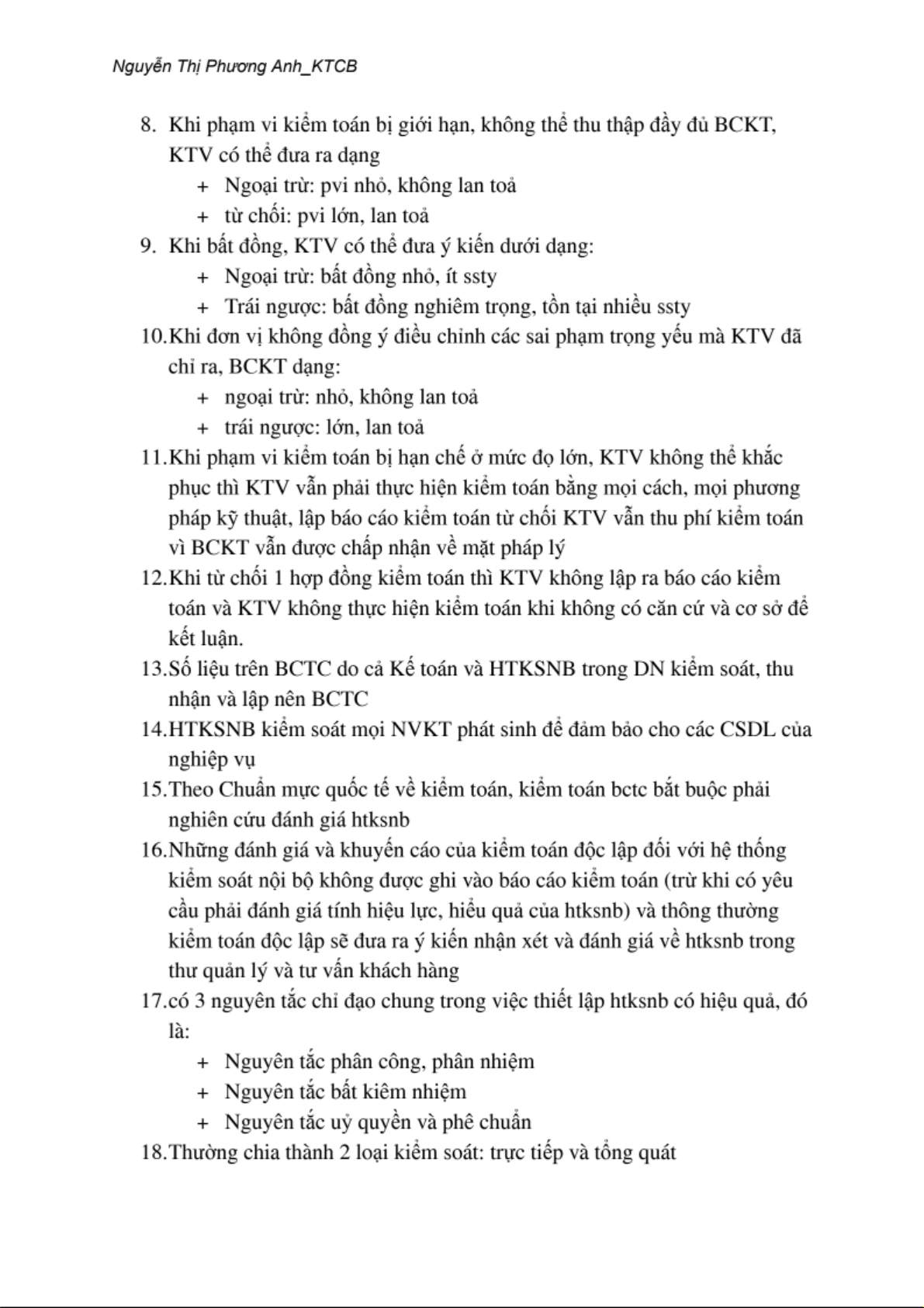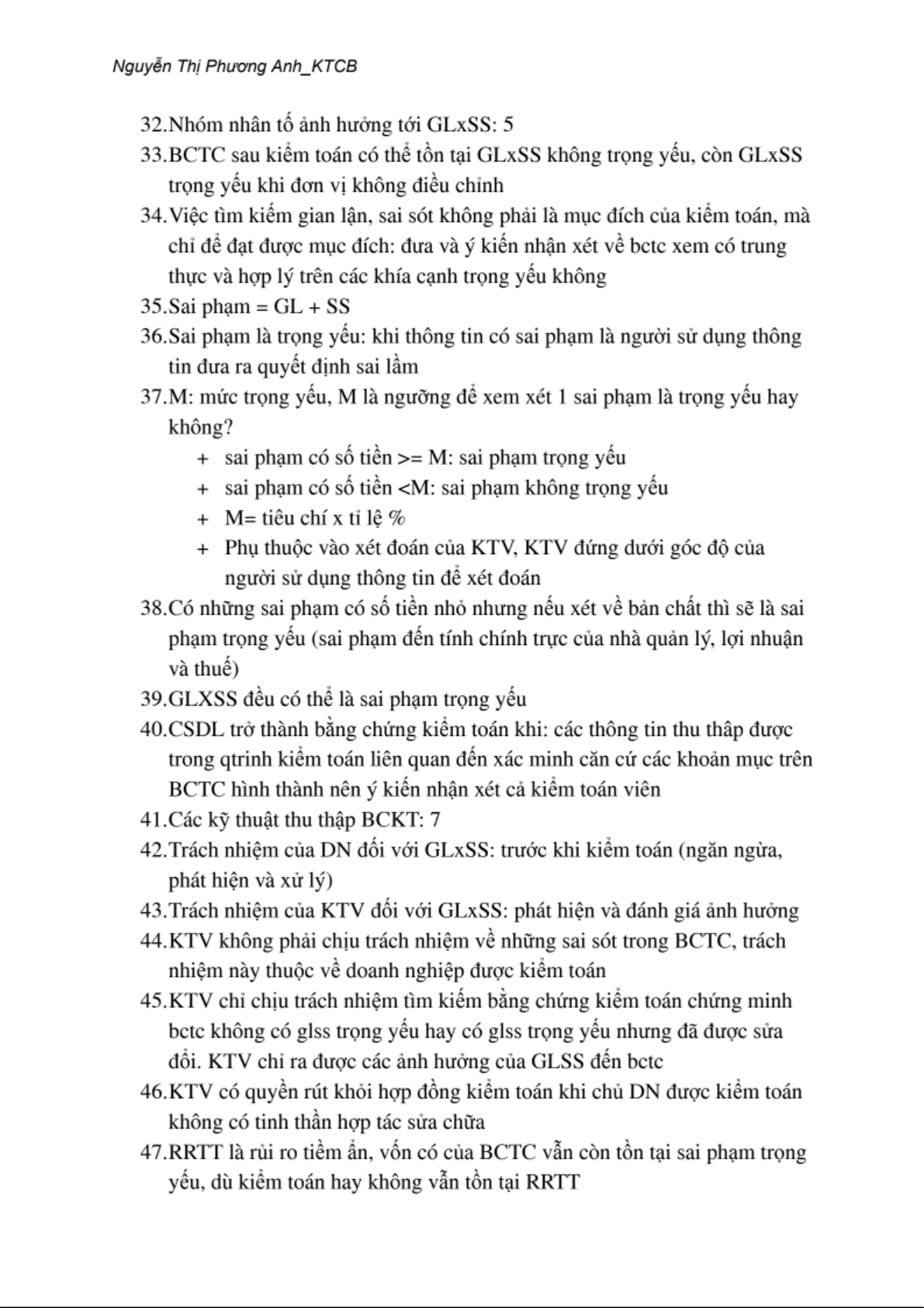 Tóm Tắt Kiểm Toán Căn Bản cho Thi Trắc Nghiệm | Kiểm toán căn bản | Học viện Tài chính