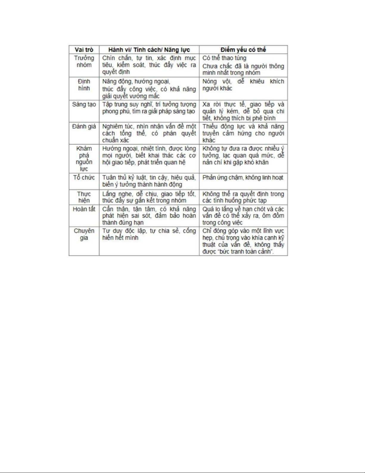 + sự phối hợp, tính kế hoạch và vì mục tiêu chung 2. Vai trò
