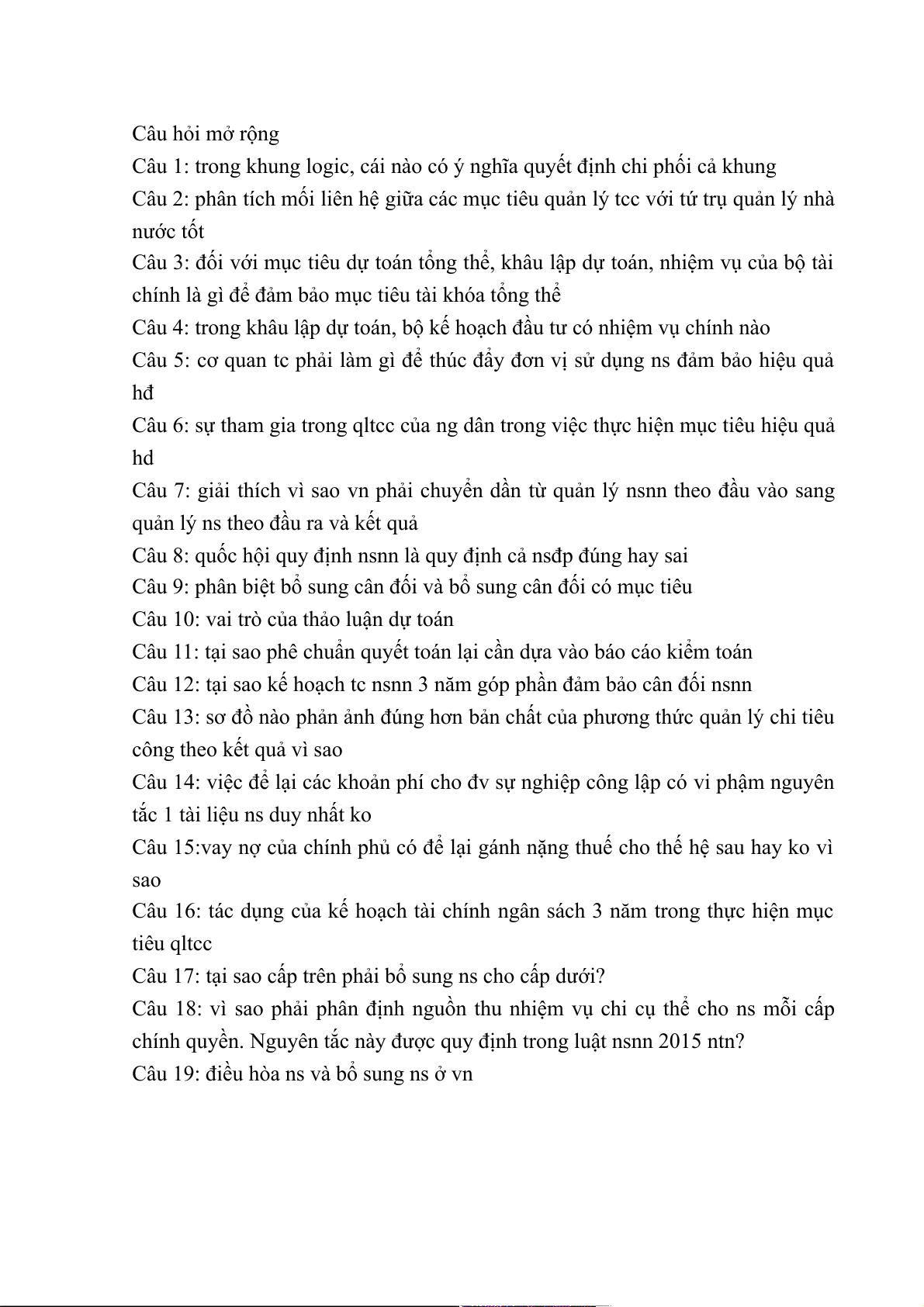 Câu 16: tác dụng của kế hoạch tài chính ngân sách 3 năm trong thực hiện mục tiêu qltcc