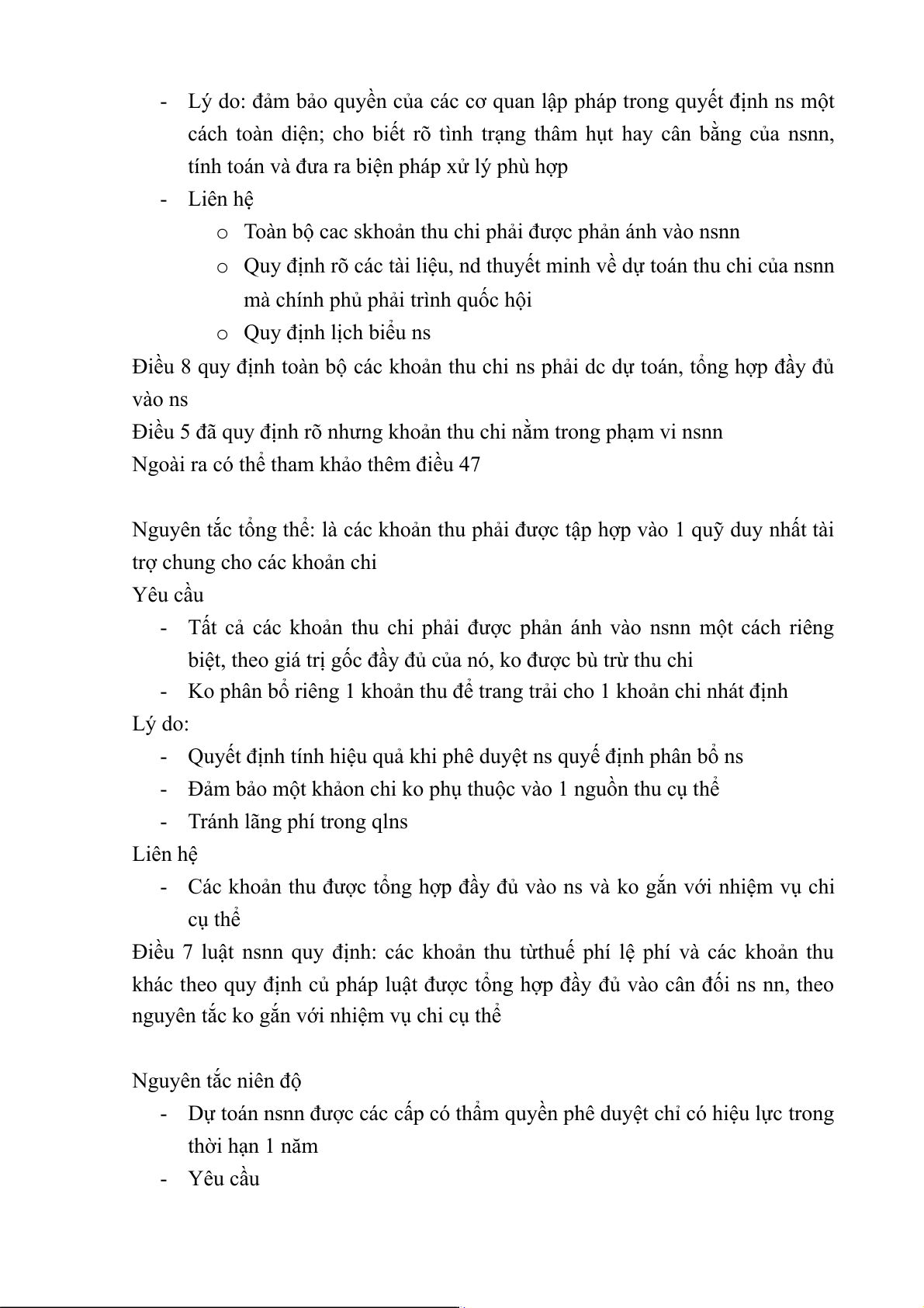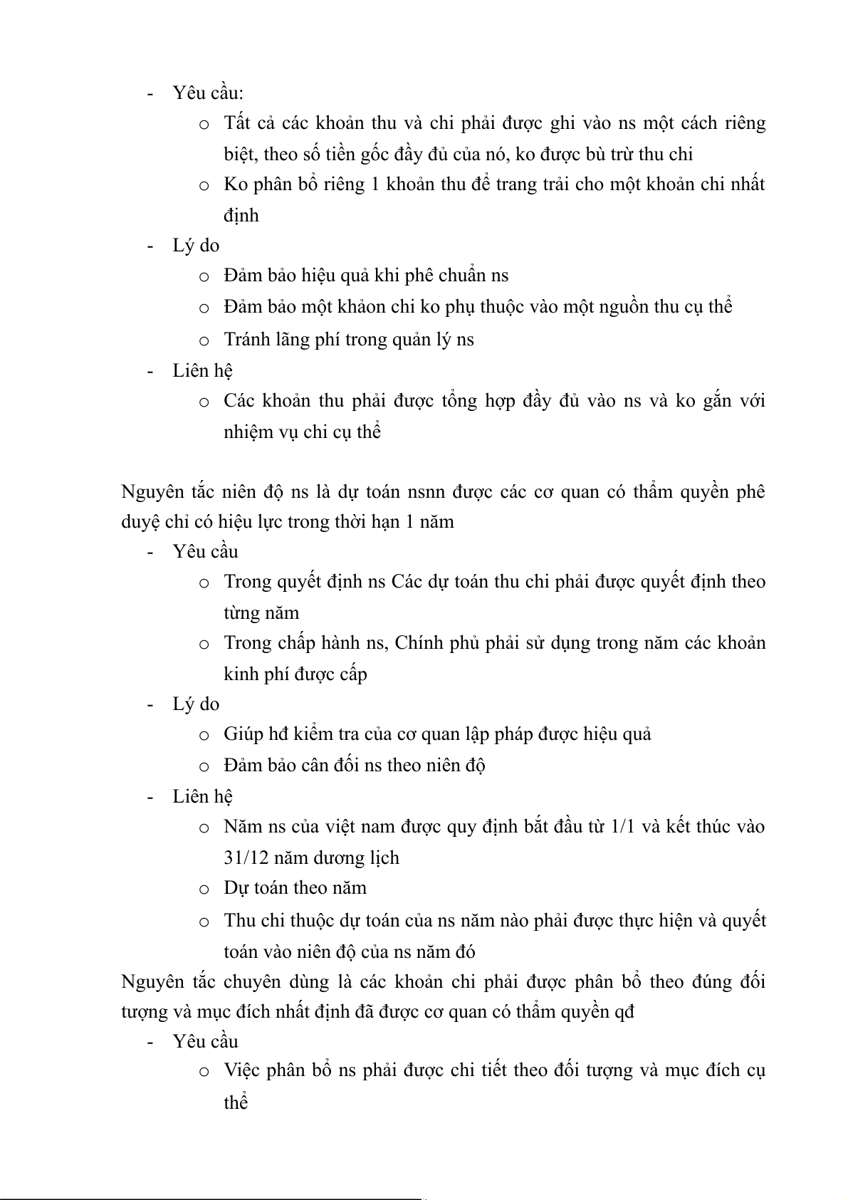 - Ngân sách nhà nước phải tổng hợp được toàn bộ các khoản thu chi của nn