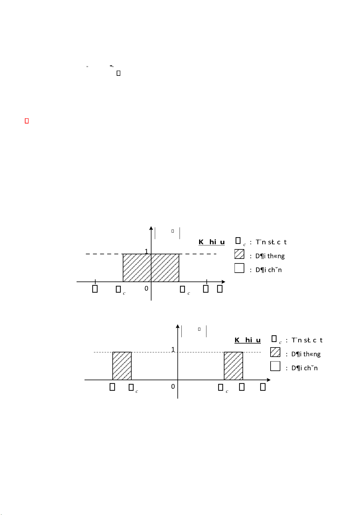 Trong phần này, chúng ta phải nắm ược bốn bộ lọc số lý tưởng thông qua các áp ứng biên ộ của chúng. Bộ lọc thông thấp: j H ( e ) c − − c c Bộ lọc thông cao: j H ( e ) c − − c c lOMoARcPSD| 36086670 Bộ lọc thông dải: H ( j e ) , 1 c 1 c D¶i th«ng − − − c2 1 c c1 c2 Bộ lọc chắn dải: H ( j e ) 1 c c2 − − − c2 1 c 1 c c2